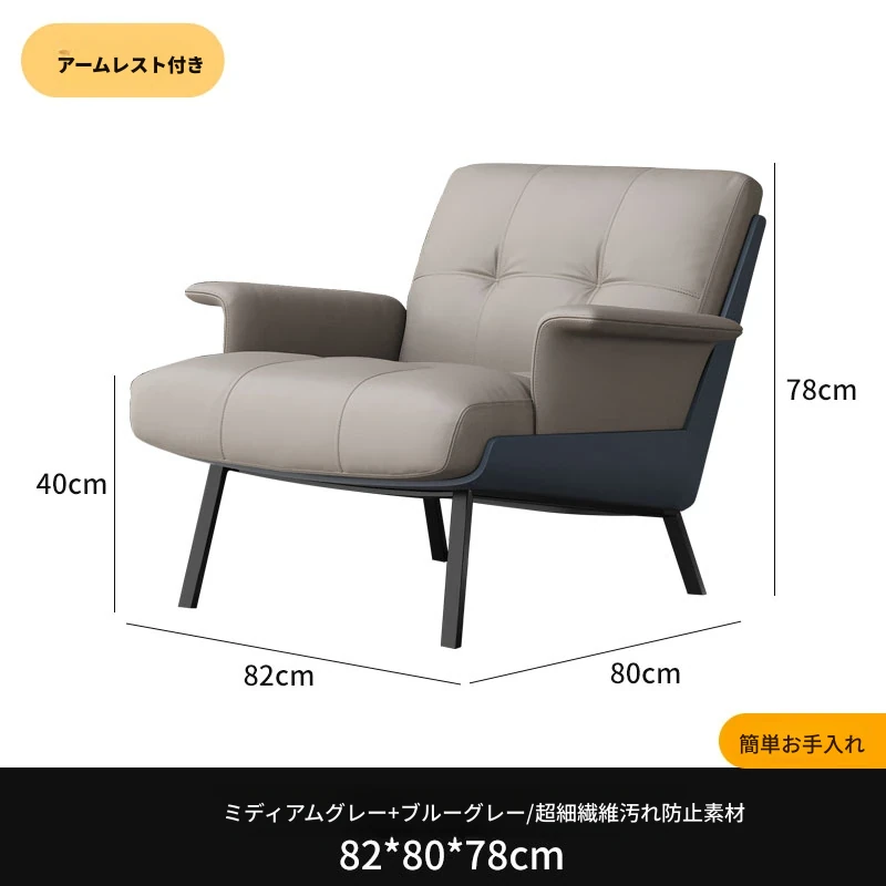 ソファチェア【ミディアムグレー+ブルーグレー】【アーム付き】 汚れ防止生地