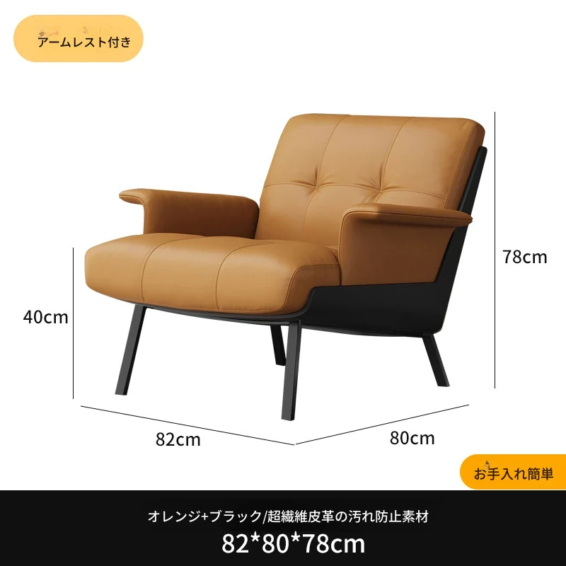 ソファチェア【オレンジ+ブラック】【アーム付き】汚れ防止生地