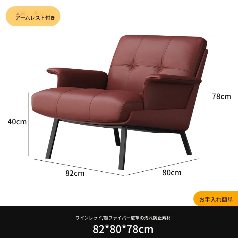 ソファチェア【ワインレッド】【アーム付き】汚れ防止生地