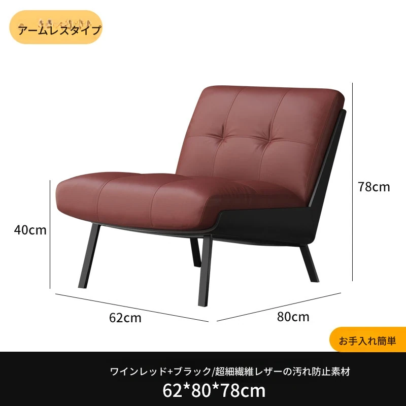 ソファチェア【ワインレッド】【アームなし】汚れ防止生地