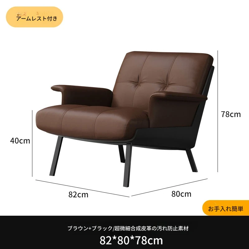 ソファチェア【ブラウン+ブラック】【アーム付き】 汚れ防止生地