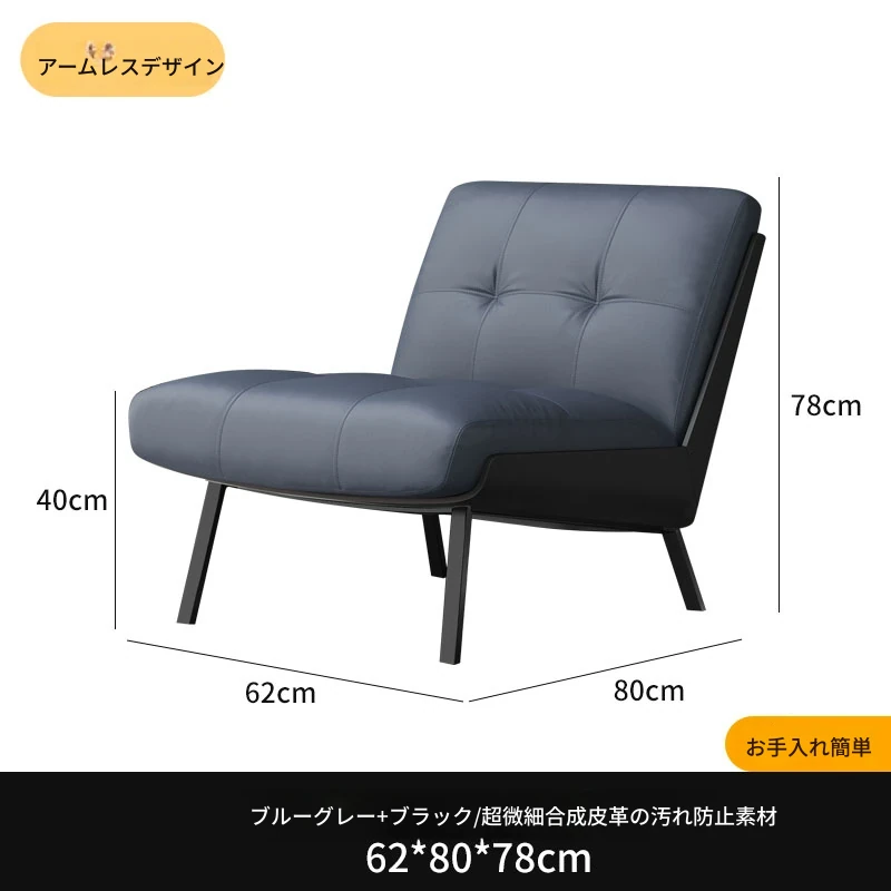 ソファチェア【ブルーグレー+ブラック】【アームなし】 汚れ防止生地