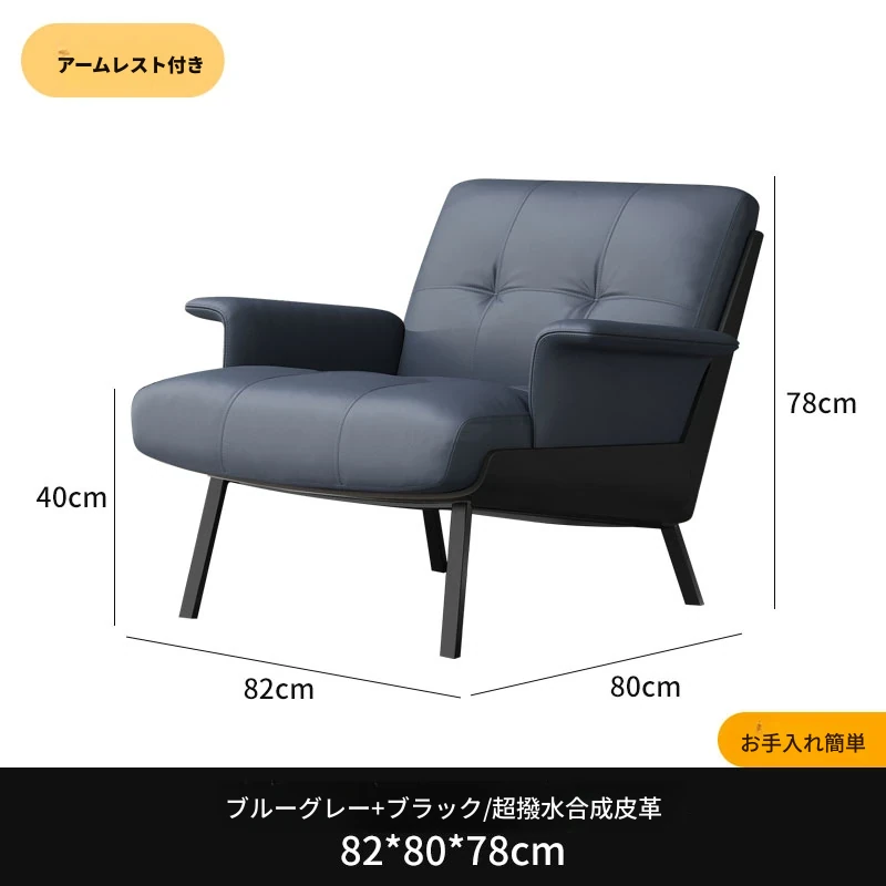 ソファチェア【ブルーグレー+ブラック】【アーム付き】汚れ防止生地