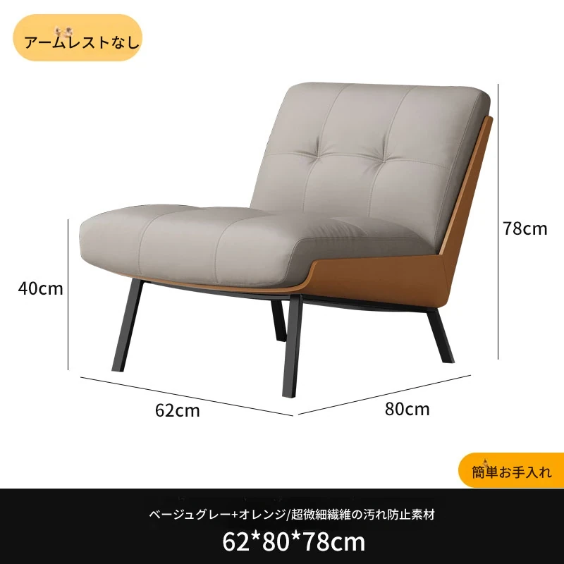 ソファチェア【ミディアムグレー+オレンジ】【アームなし】汚れ防止生地