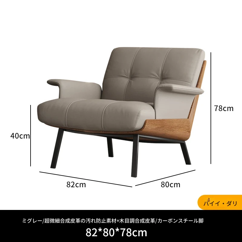 ソファチェア【ミディアムグレー+ウッドテクスチャー】【アーム付き】 汚れ防止生地
