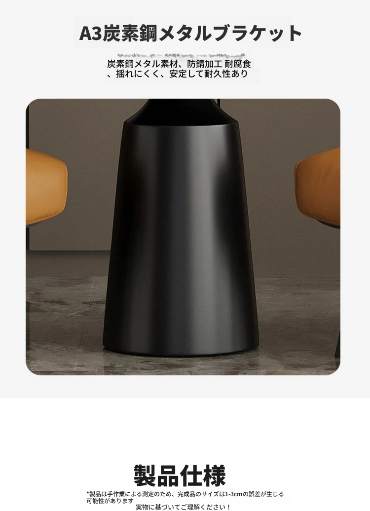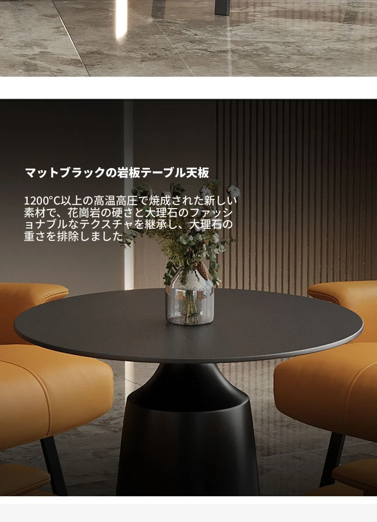 円卓50*60【マットブラックの岩板天板】