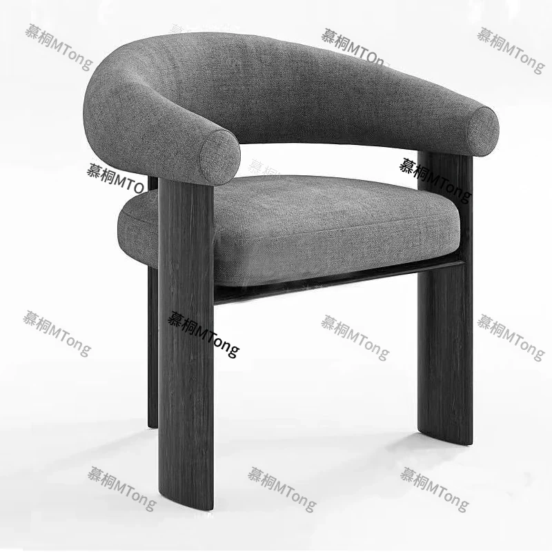 デザイナーによるイタリアンミニマリズムの高級感漂うホワイトアッシュ無垢材使用のレトロな本革ダイニングチェア。アームレスト付きで、接客や書斎にも最適な一品です。