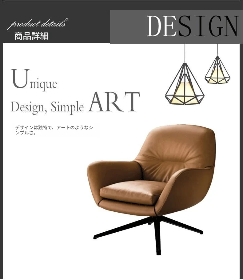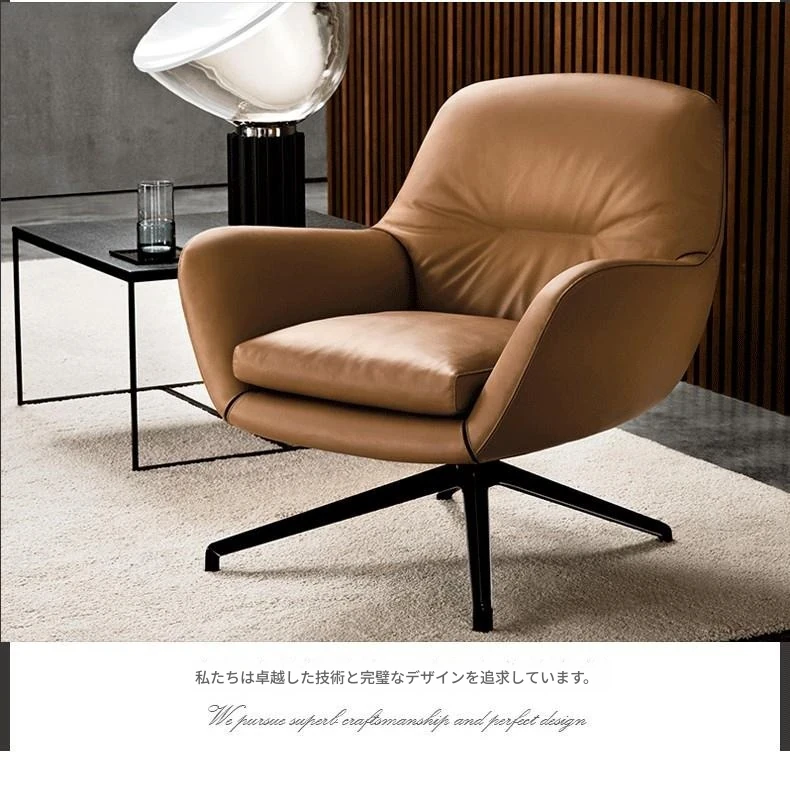 イタリアンデザインの一人用ソファチェア - リラックスできるデザイナーチェア。おしゃれなリビングや接客スペースに最適!回転式、本革使用で快適さ抜群のクリエイティブなLazyチェア。あなたの生活空間を格上げします!