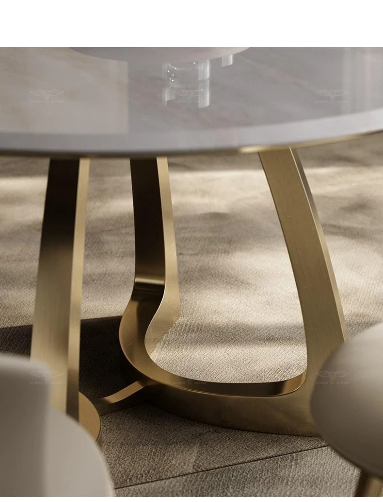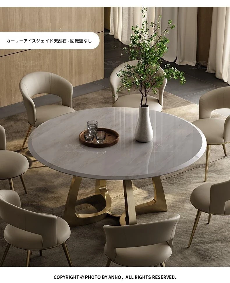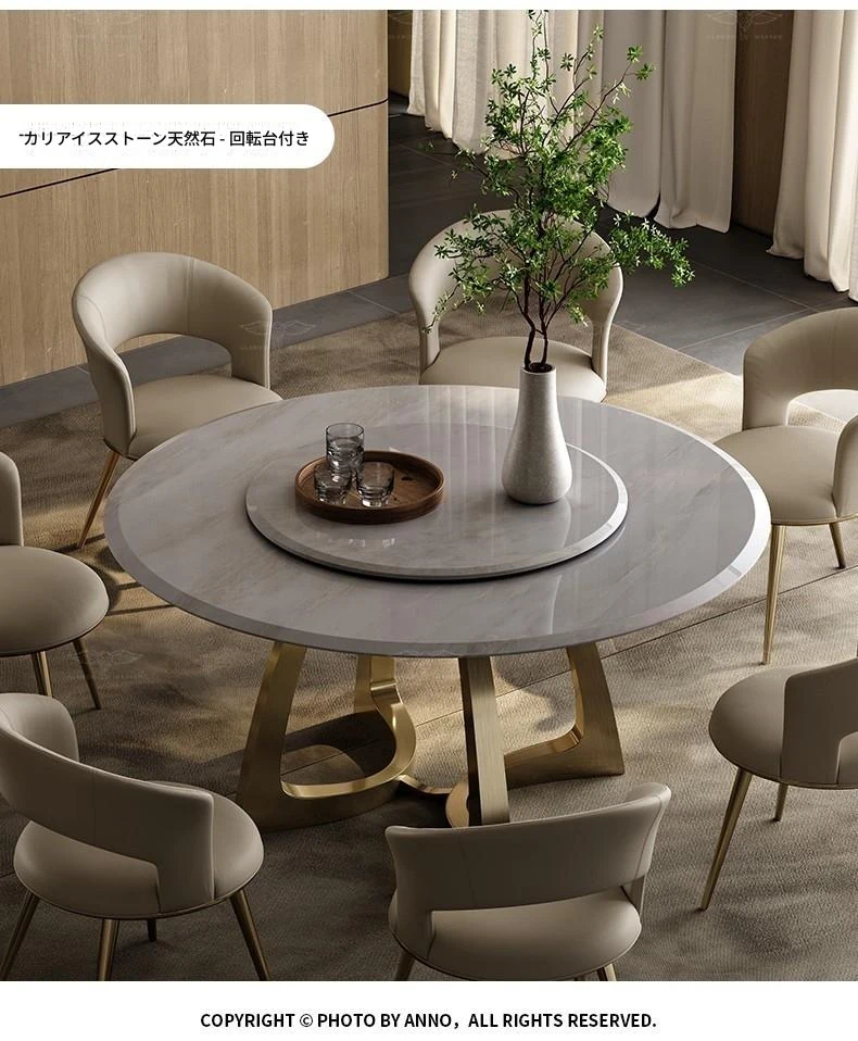 ダイニングテーブル/1.5M/回転皿あり/カリアイスストーン/シャンパンゴールド