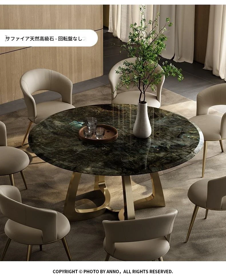ダイニングテーブル/1.5M/回転皿あり/サファイアストーン/シャンパンゴールド