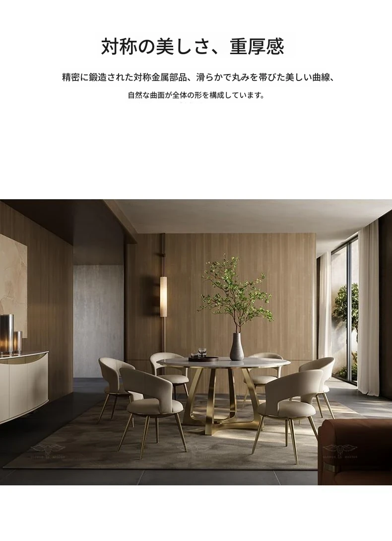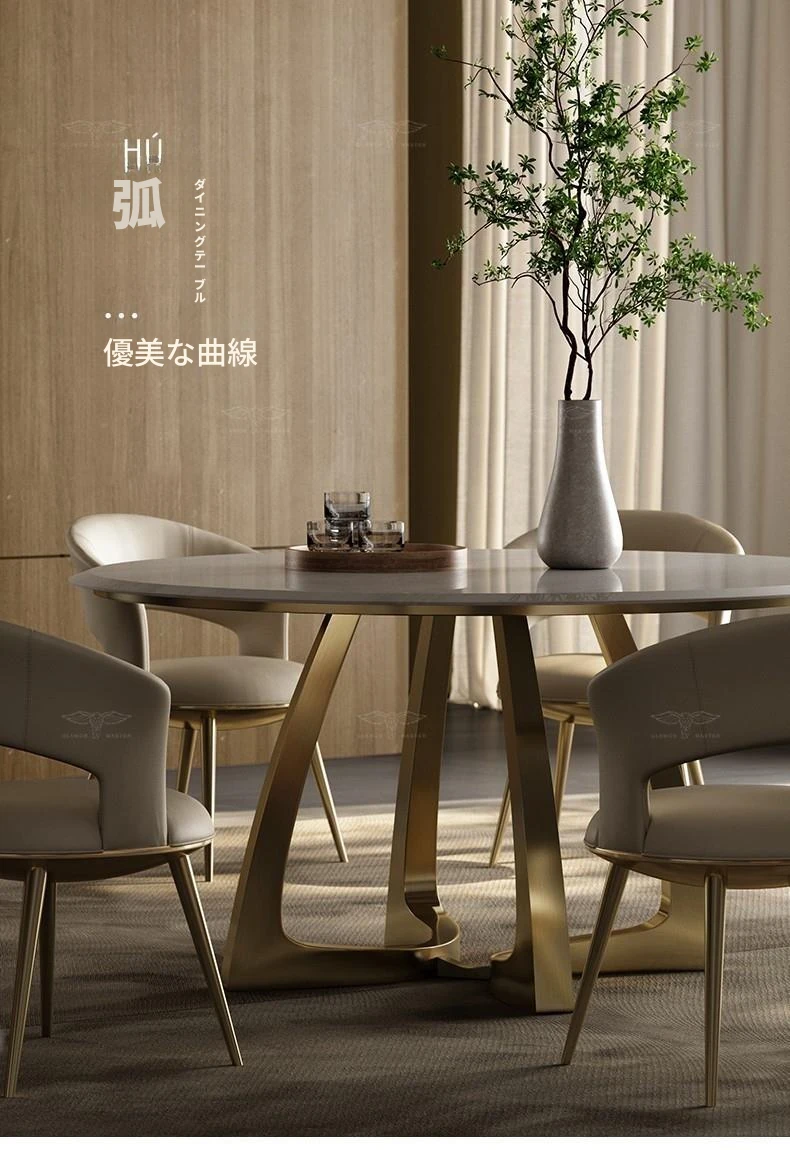 デザイナーが手がけたラグジュアリーな天然大理石ダイニングテーブル - ヴィラや広いお部屋に最適な高級食卓セット。優雅な雰囲気を演出する、洗練されたデザインのテーブルと椅子のコンビネーション!