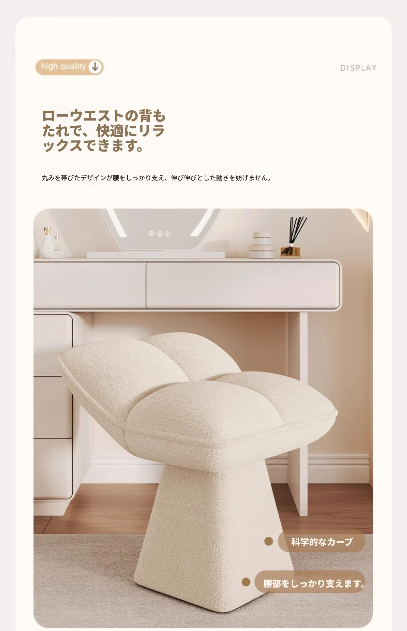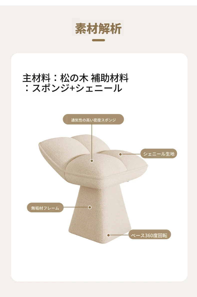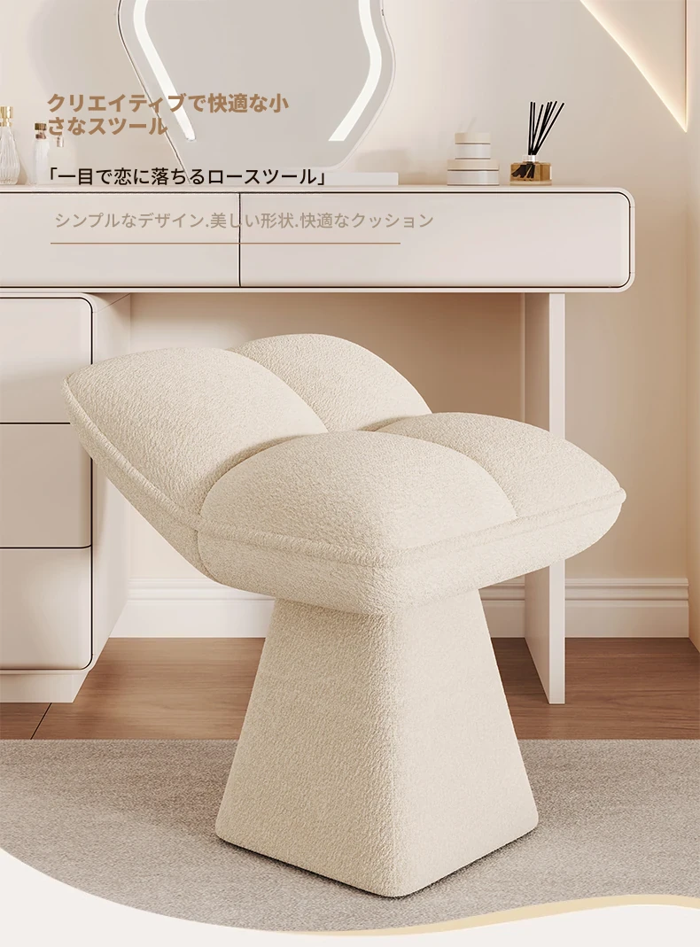 デザイナーズベッドルーム用メイクアップスツール - おしゃれなドレッサーやリビングにぴったりな小型スツール!回転式で便利、ネイルアートにも最適な家庭用コスメスツールです。あなたのインテリアに華を添えます!