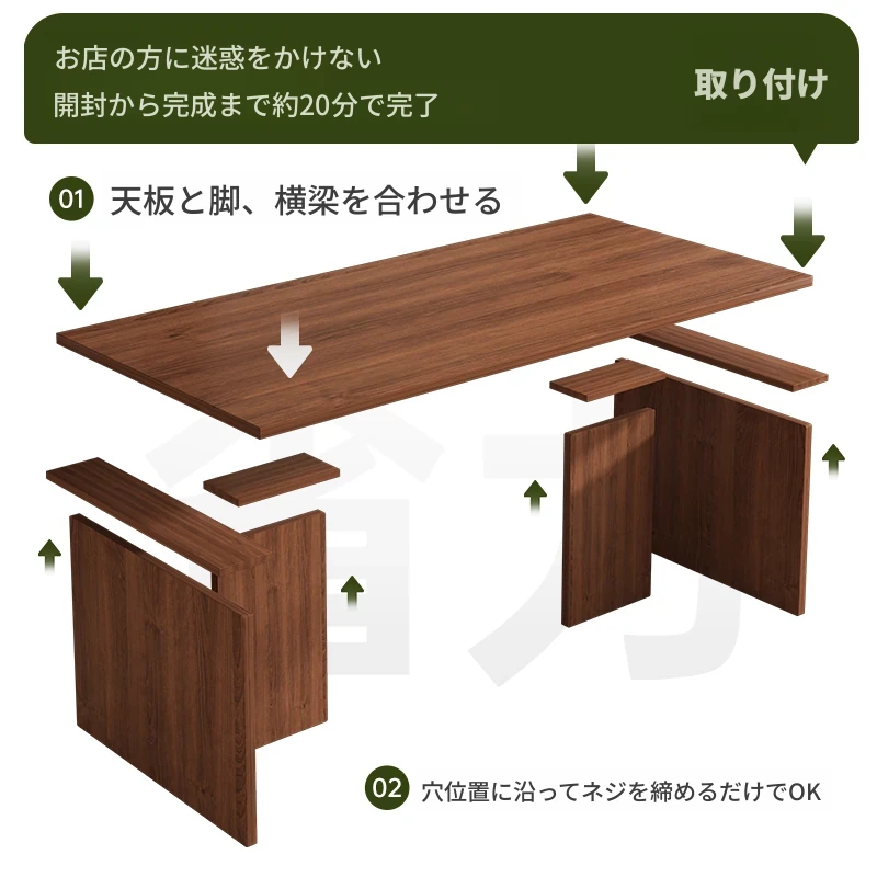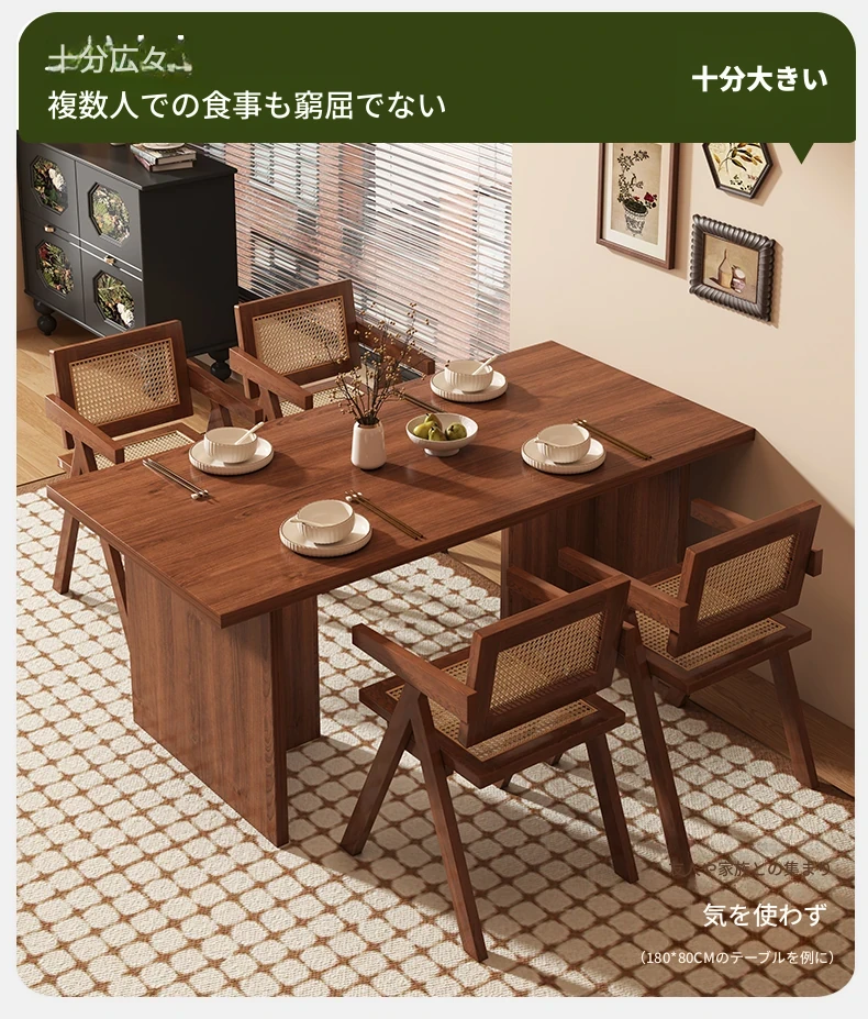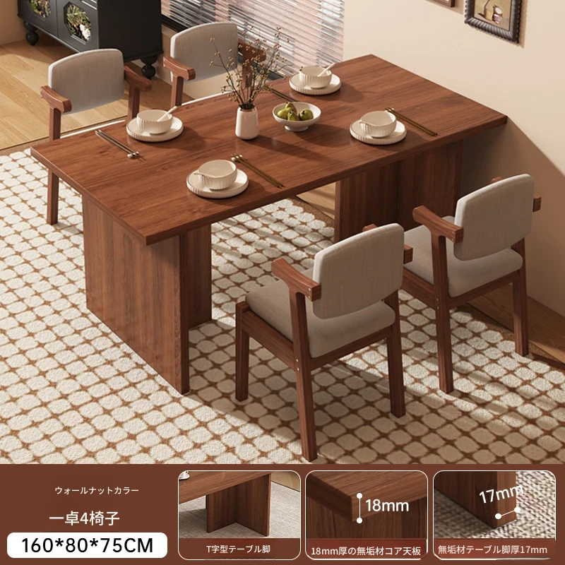 【1テーブル4本木アームチェア】ウォールナット色160*80*75