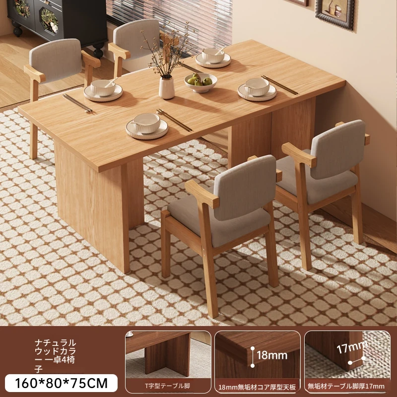 【1テーブル4本木アームチェア】ナチュラル色160*80*75