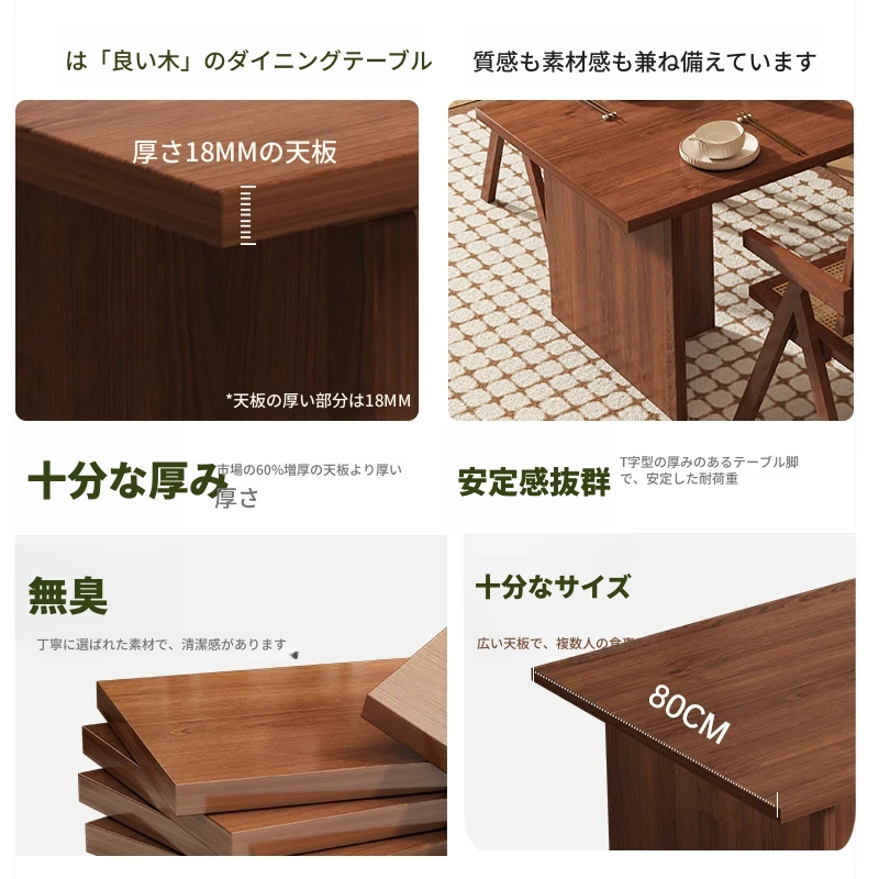 【1テーブル4本木椅子+ベンチ】ウォールナット色160*80*75