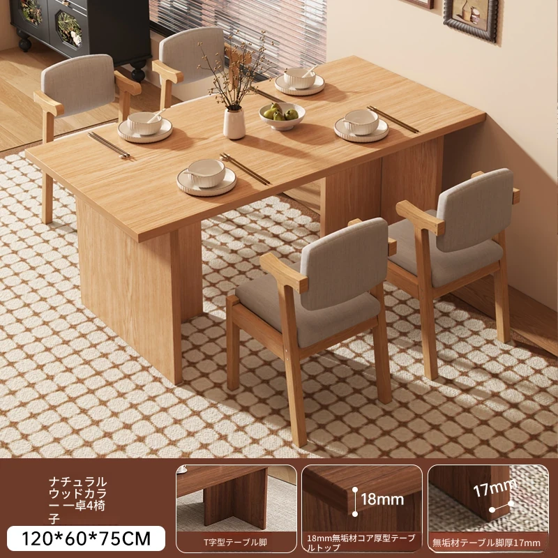 【1テーブル4本木アームチェア】ナチュラル色120*60*75