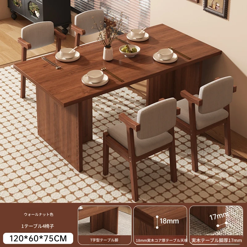 【1テーブル4本木アームチェア】ウォールナット色120*60*75