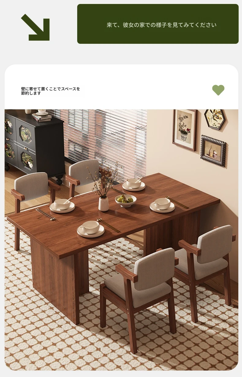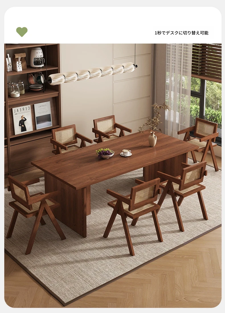 2025年新作!デザイナーによる長方形の中古風ダイニングテーブル – 新中式スタイルのリビングにぴったりな食卓セット、家族や友人との楽しい食事を演出します!