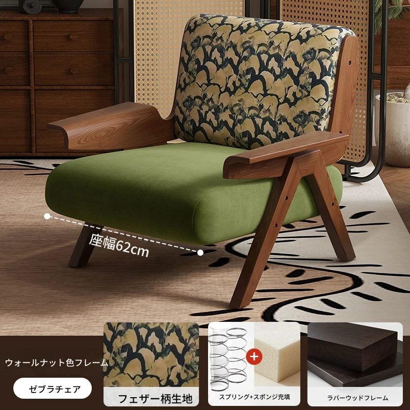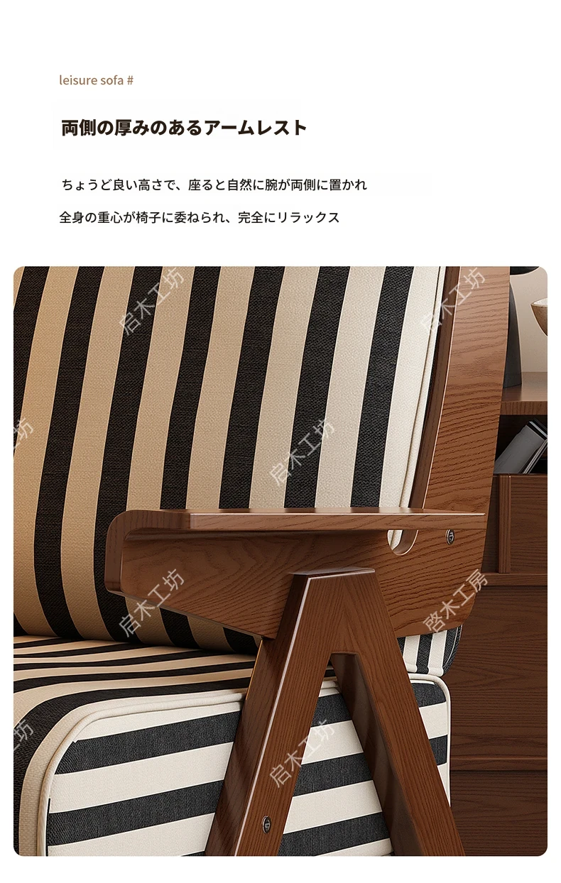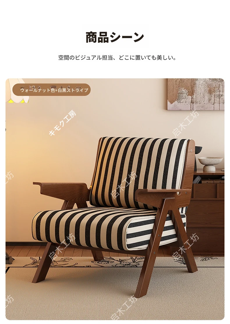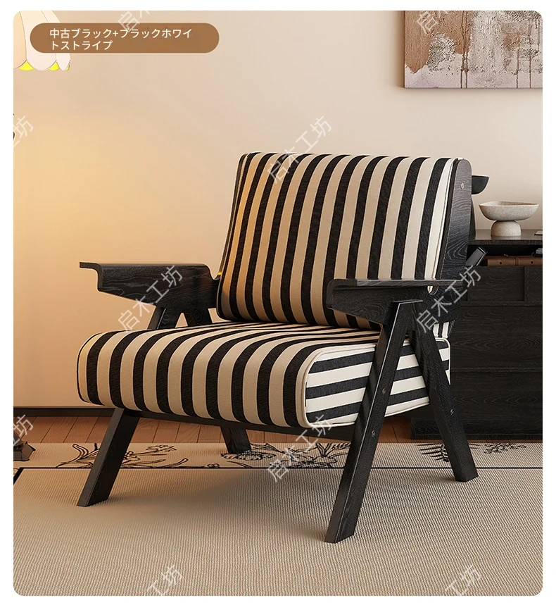 デザイナーによる無垢材の一人掛けソファチェア - ホテル向けの背もたれ付きフレンチスタイル布製ソファチェアで、アンティーク風のリラックスチェアとして最適です。おしゃれな空間を演出し、くつろぎのひとときを提供します!
