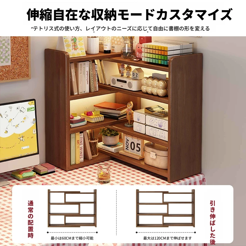 デスク上の整理整頓!シンプルでスタイリッシュなコーナー収納キャビネット - オフィスや家庭に最適なデスク上書棚。小物もスッキリ収まる!あなたの作業スペースをスマートに演出します。