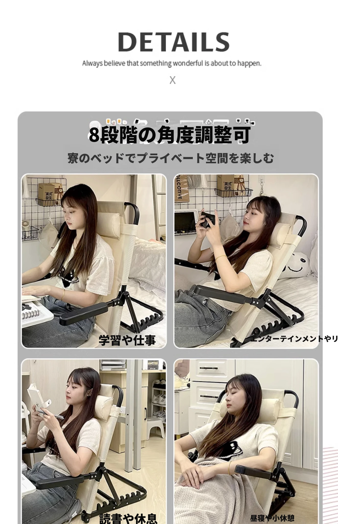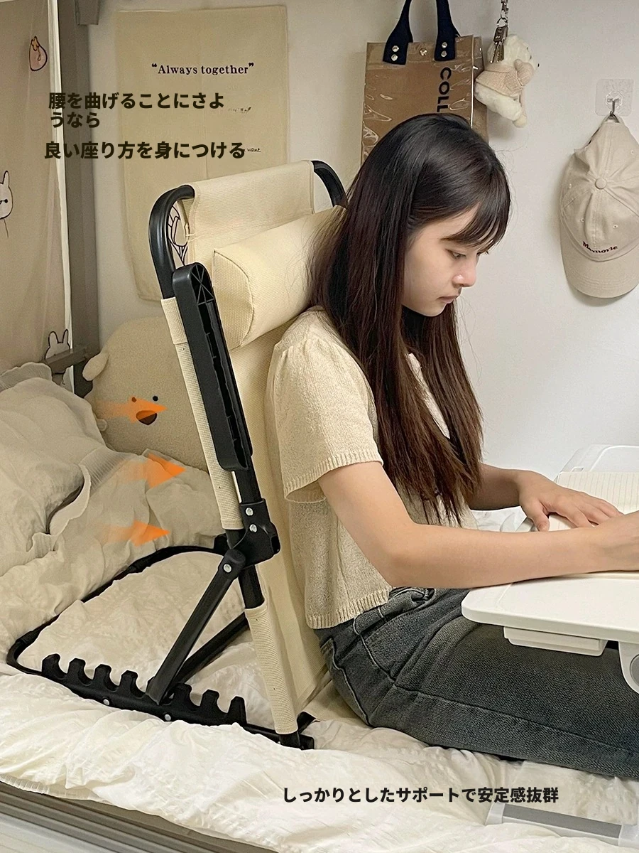 大学生必見!宿舎用おしゃれ背もたれチェア - 長時間座っても快適なクッション付き、折りたたみ可能なリラックスソファ。畳や寝室にもぴったりの便利なアイテム!
