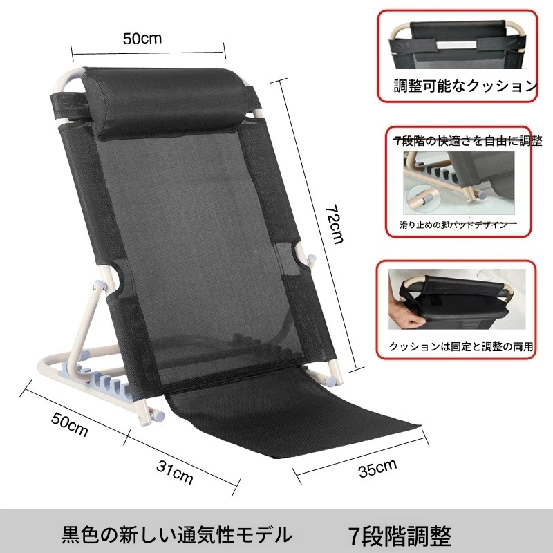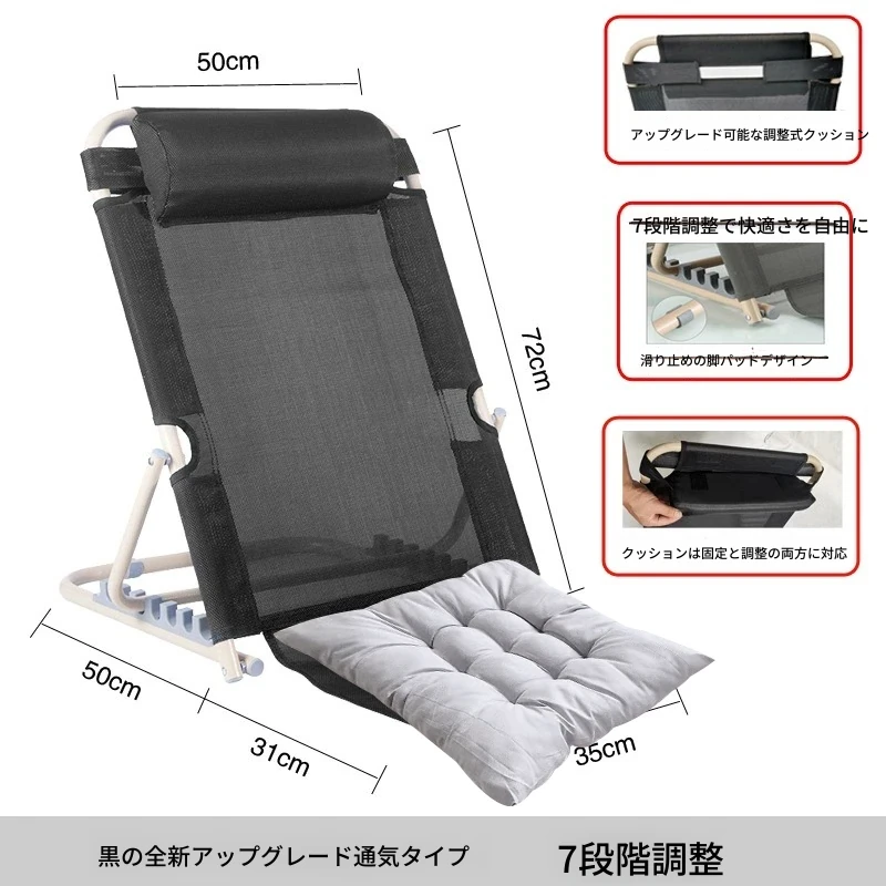 【アップグレードソフトパッド】7段調整-大黒色【通気性タイプ】+ソフトパッド