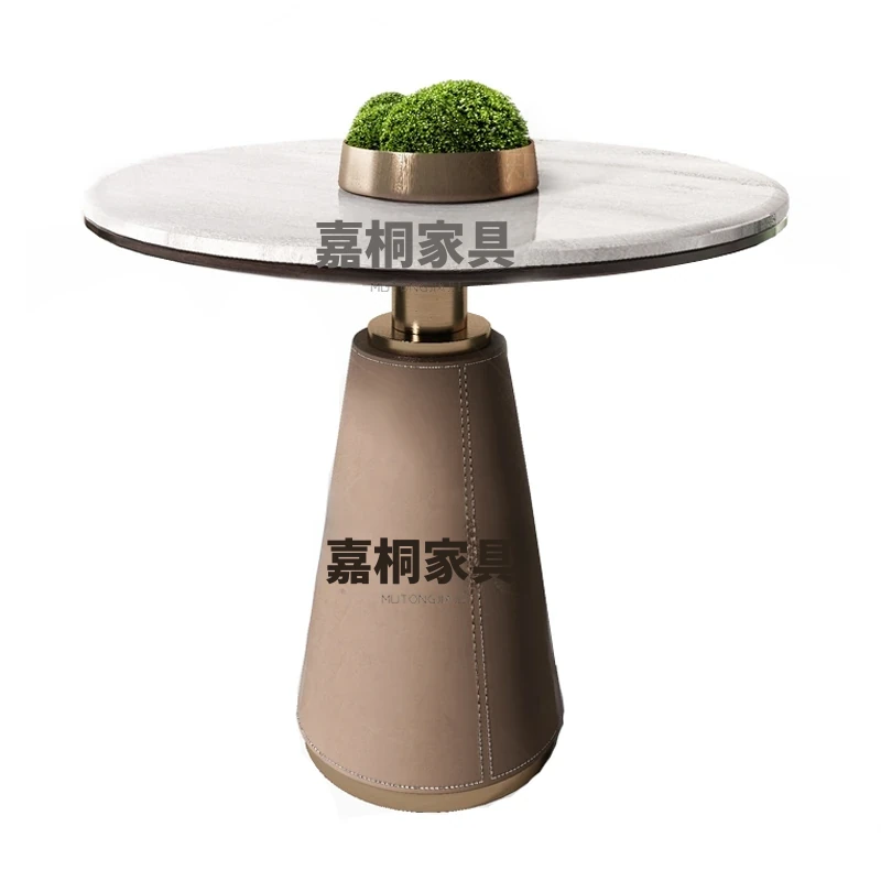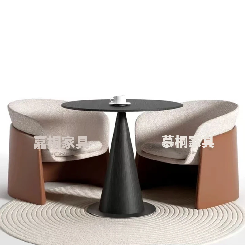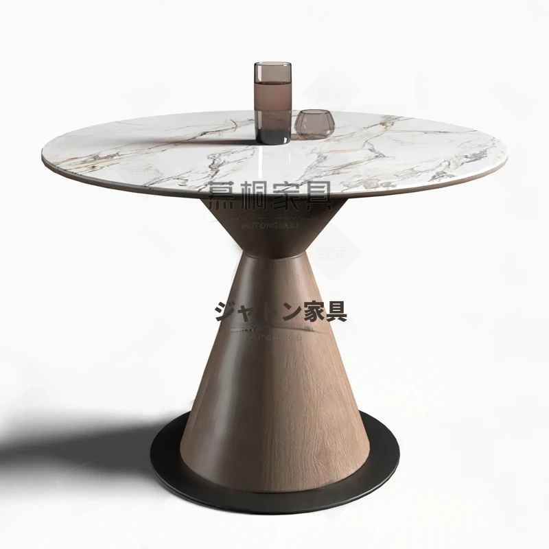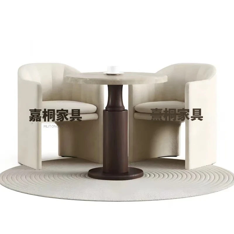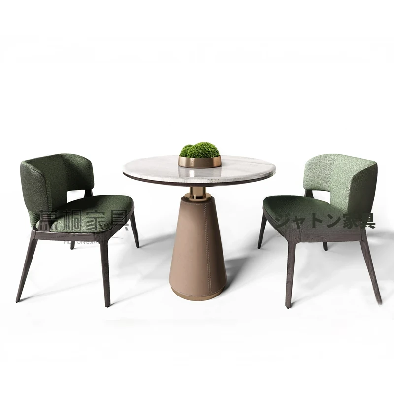 天然大理石製のラグジュアリーなデザイナー円形テーブル&チェアセット - 高級感溢れるオフィス用会議・接待テーブルで特別なひとときを演出!
