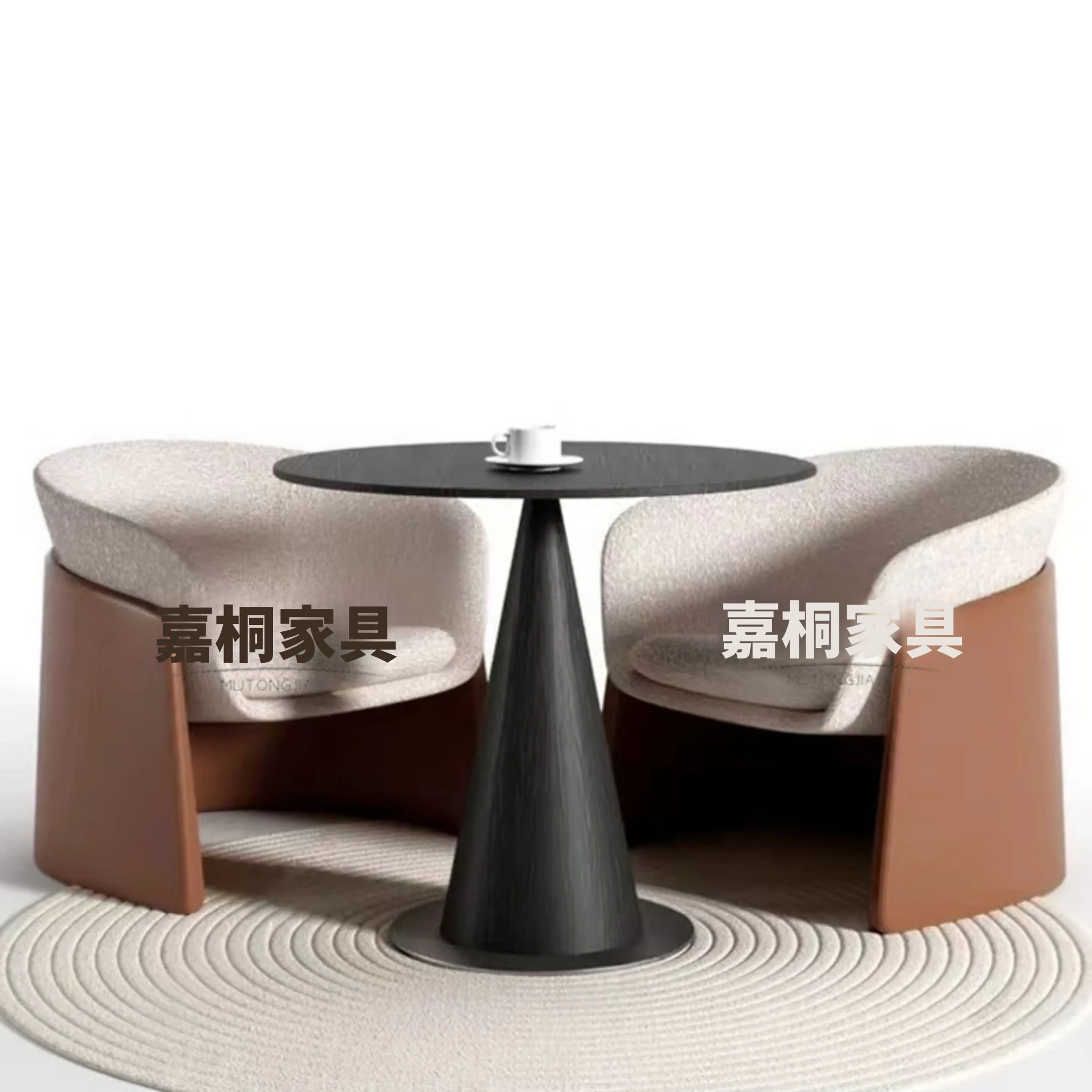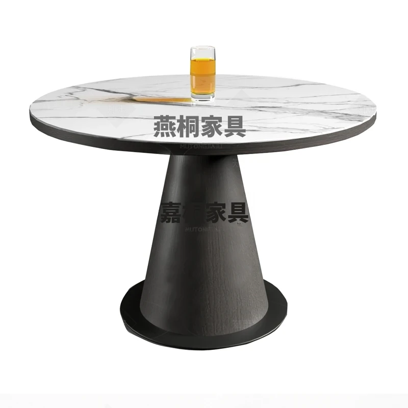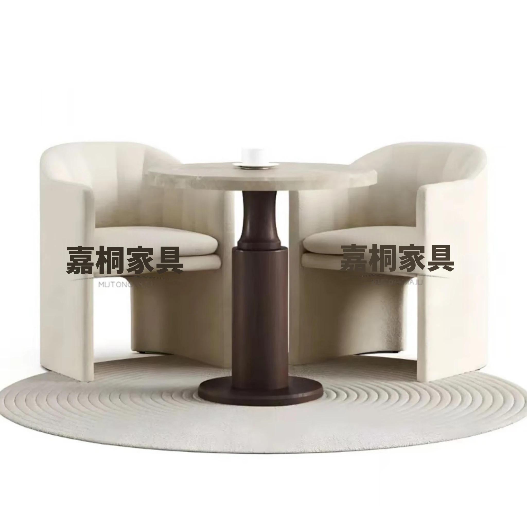 天然大理石製のラグジュアリーなデザイナー円形テーブル&チェアセット - 高級感溢れるオフィス用会議・接待テーブルで特別なひとときを演出!