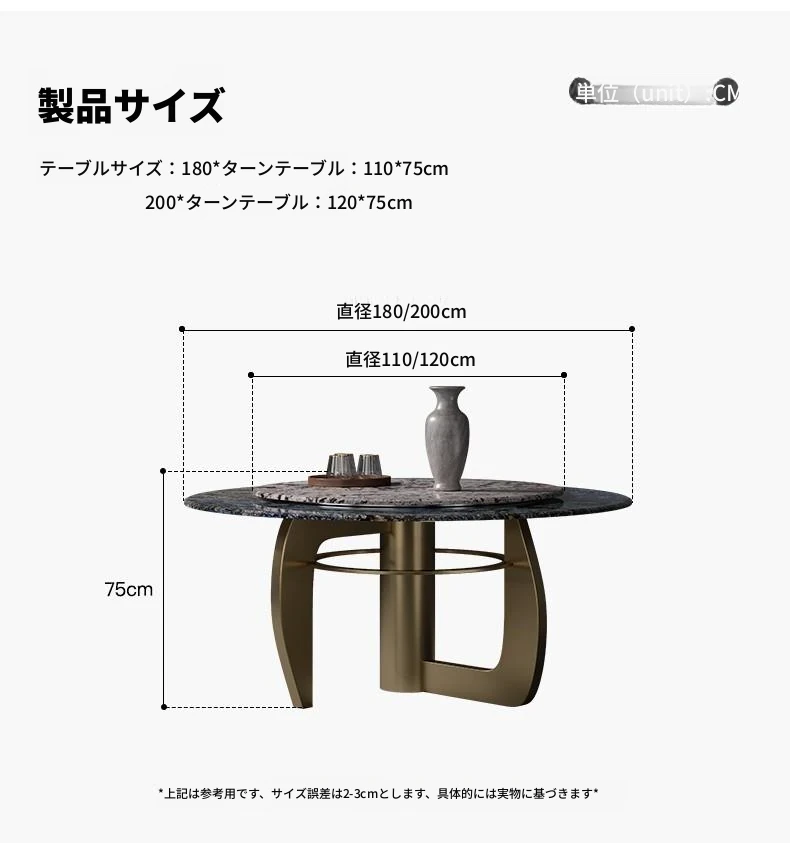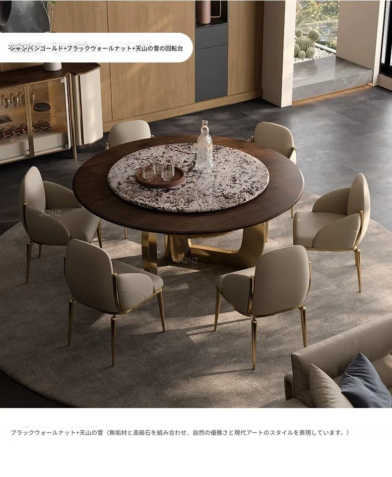 円卓/1.8M/西アフリカウッド+天山暮雪ターンテーブル/シャンパンゴールド