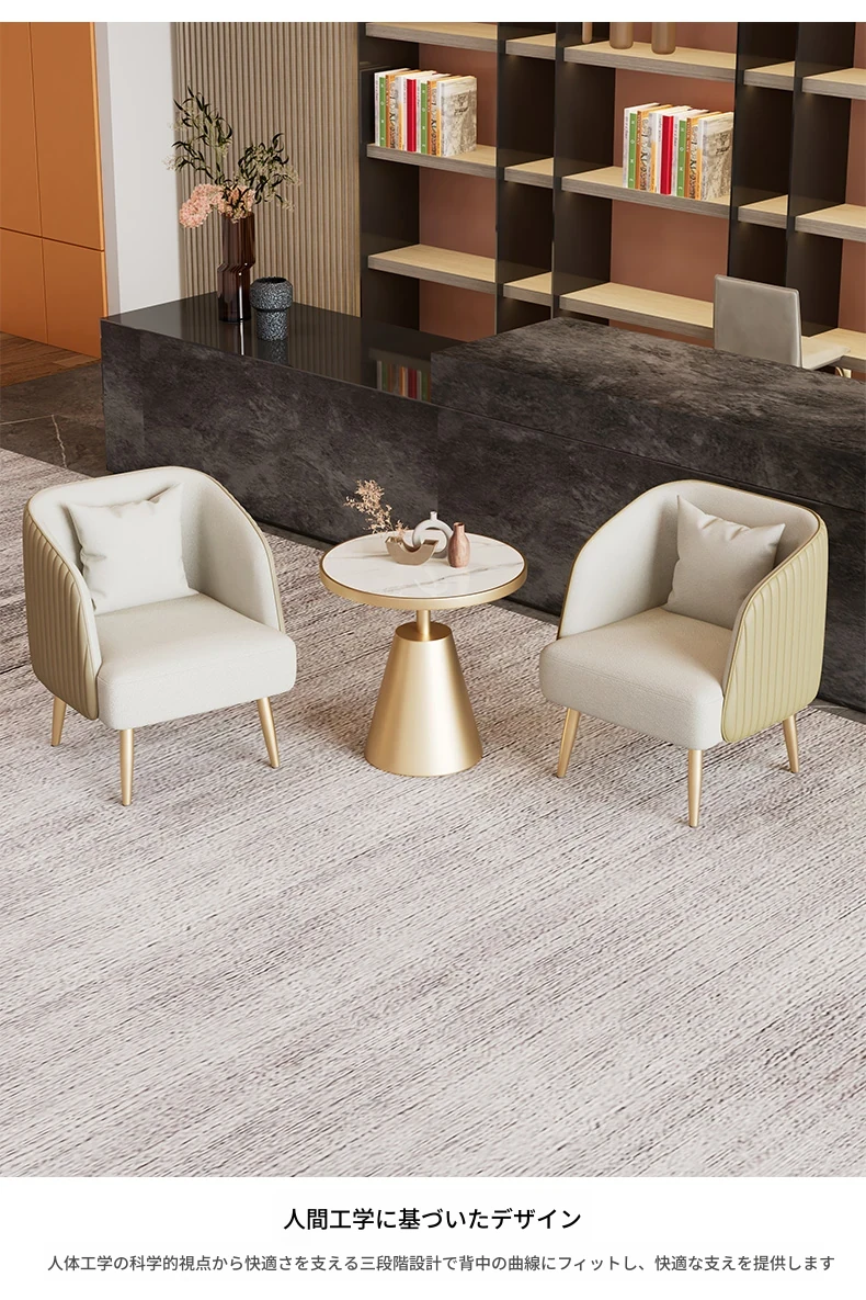 ラグジュアリーなシングルソファ - ホテル、販売センター、オフィスの接客スペースに最適なサロンセット。リラックスできる休息エリアや商談にぴったりなデザインで、上質なひとときを提供します。