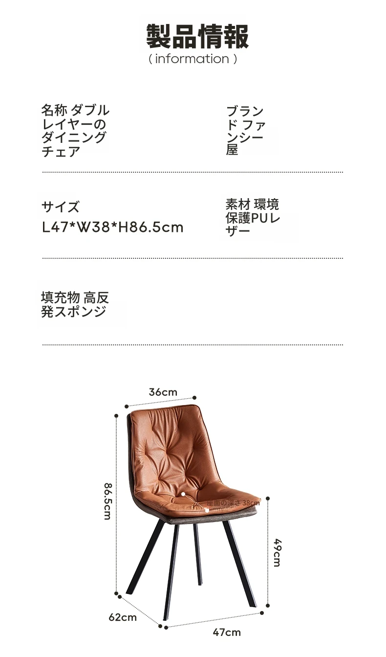 ダブルレイヤーのダイニングチェア 深茶色 シングルハンド スタンダードタイプ 在庫あり