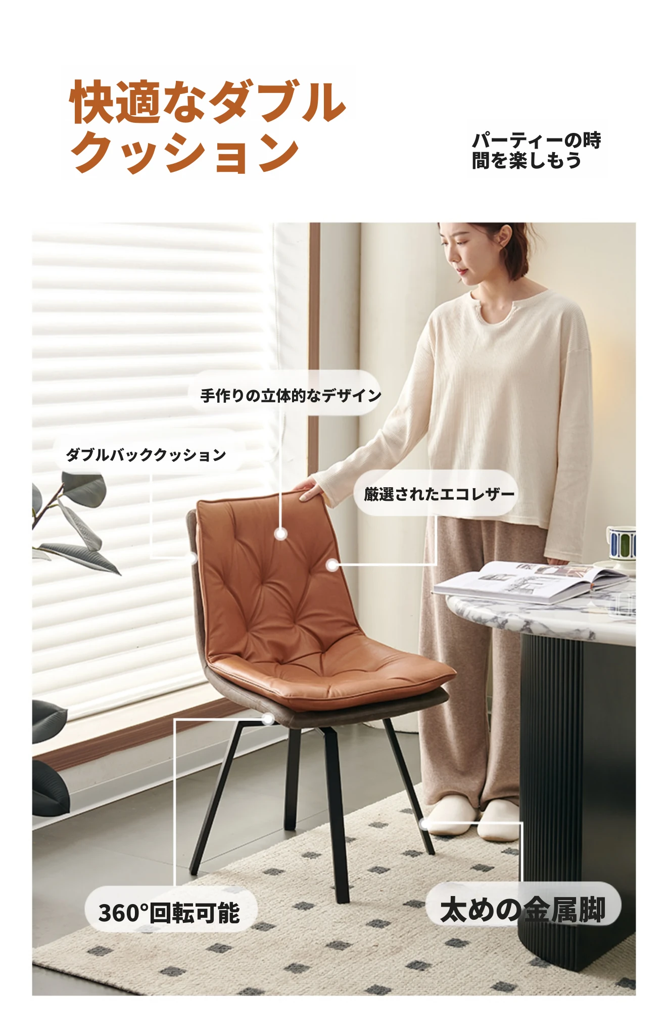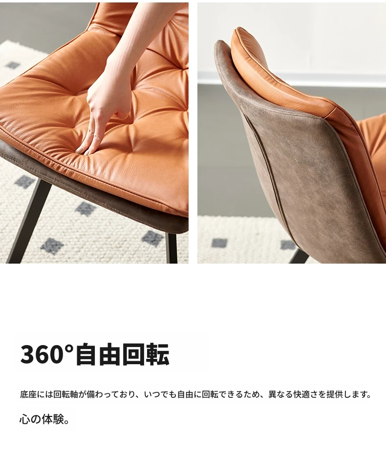 ダブルレイヤーのダイニングチェア オレンジ色 ダブルハンド 回転タイプ 在庫あり