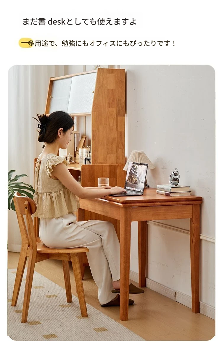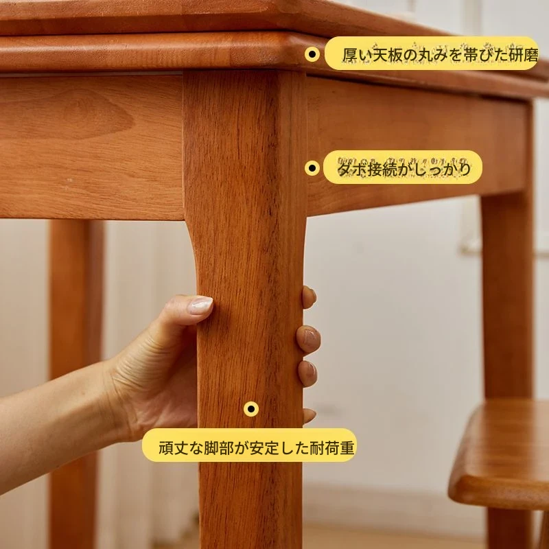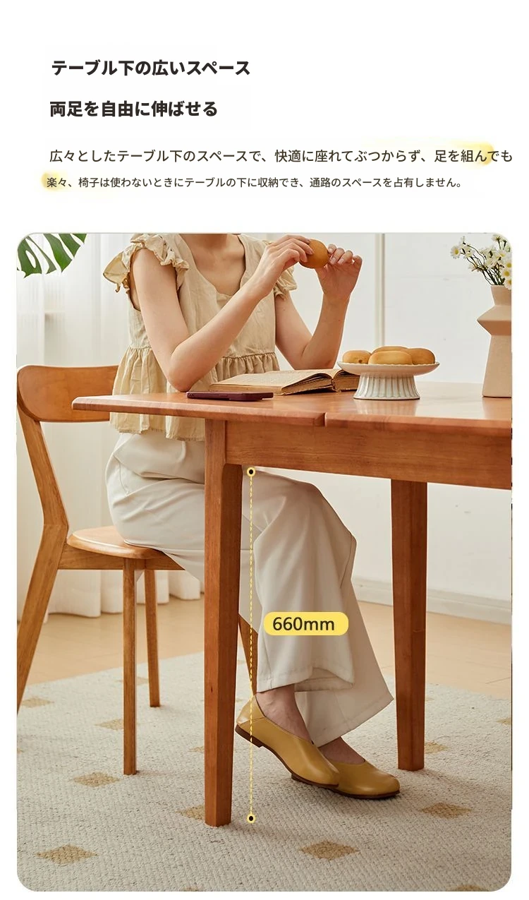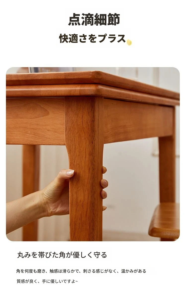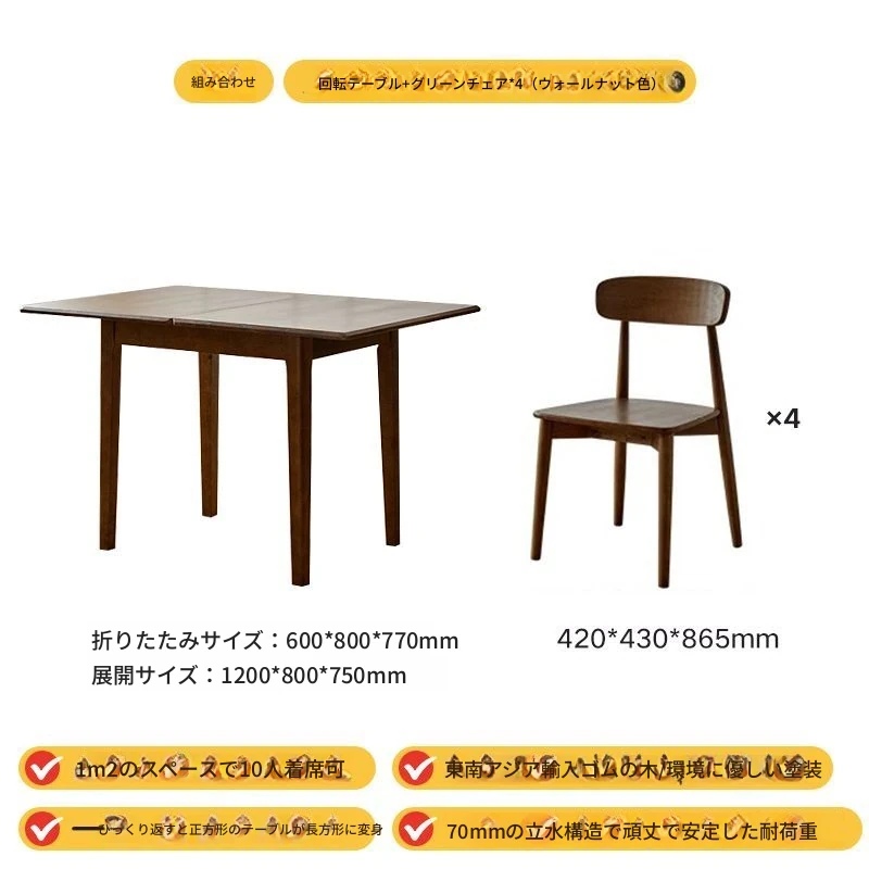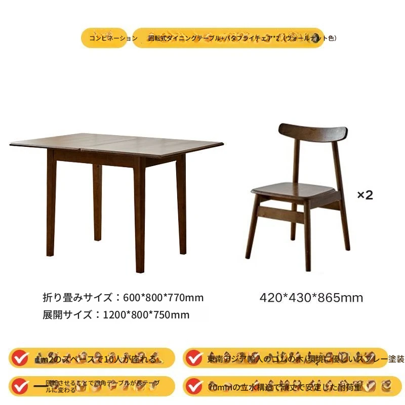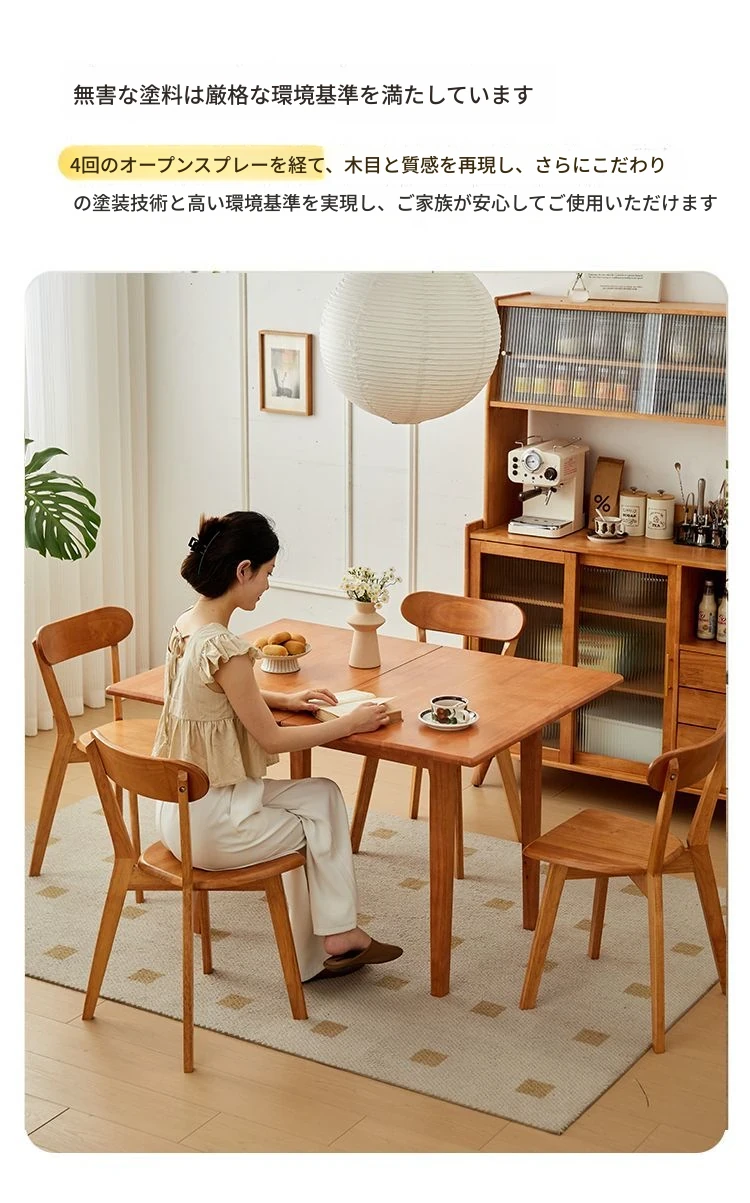 折りたたみ式実木ダイニングテーブル - スペースを有効活用!長方形&正方形のコンビネーション、コンパクトな家庭向け、チェリーウッドカラーでスタイリッシュな食事空間を演出!