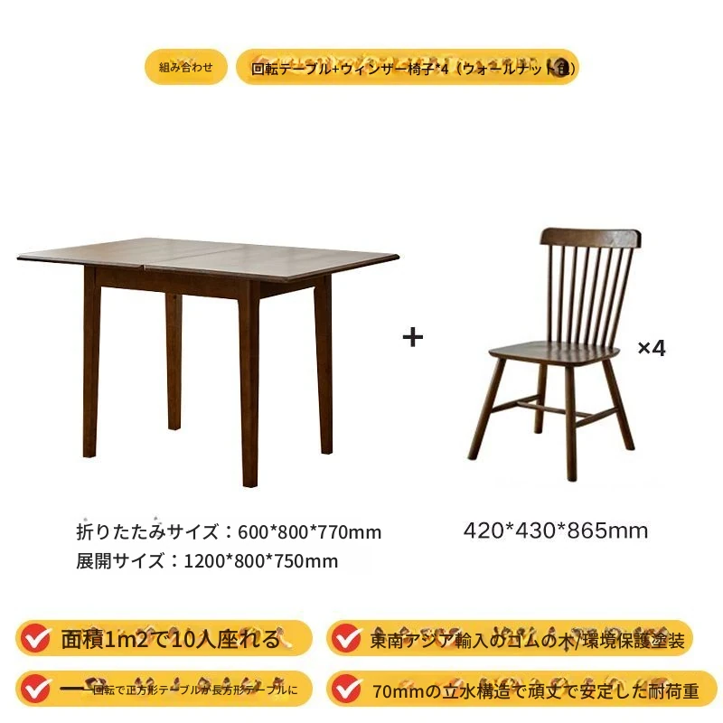 一卓四椅セット 単卓+ウィンザーチェアx4/ウォールナット色