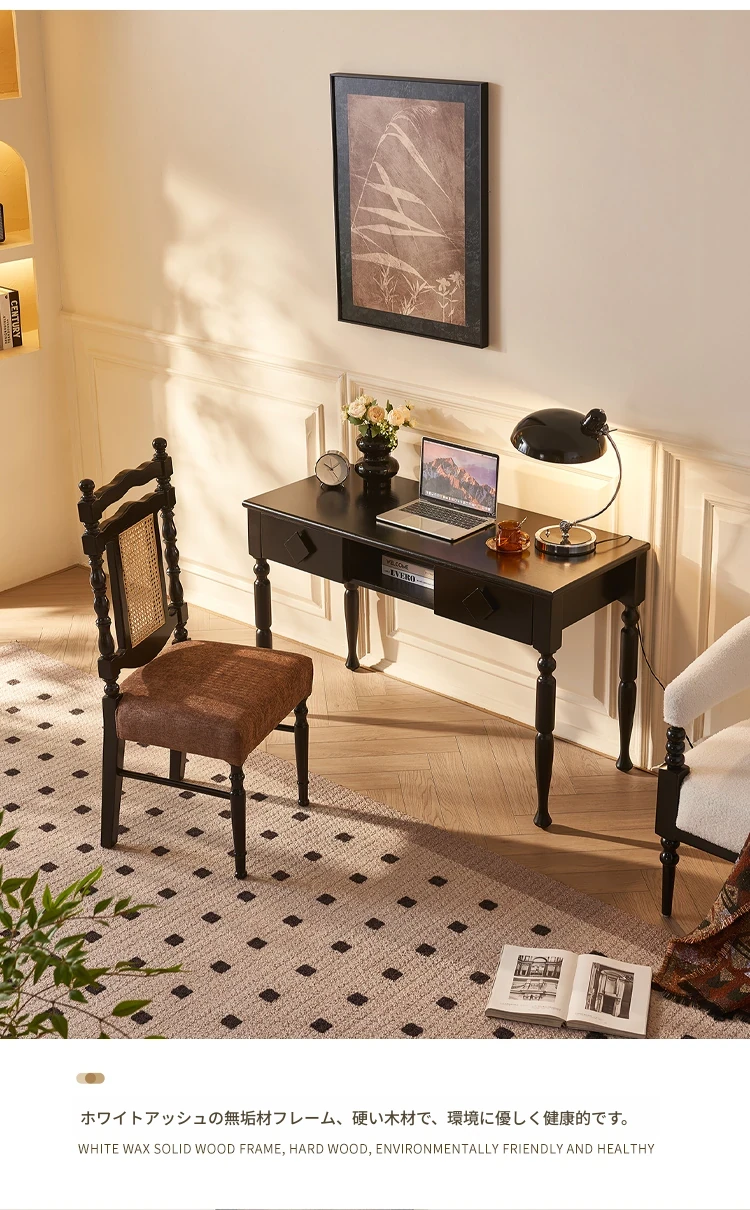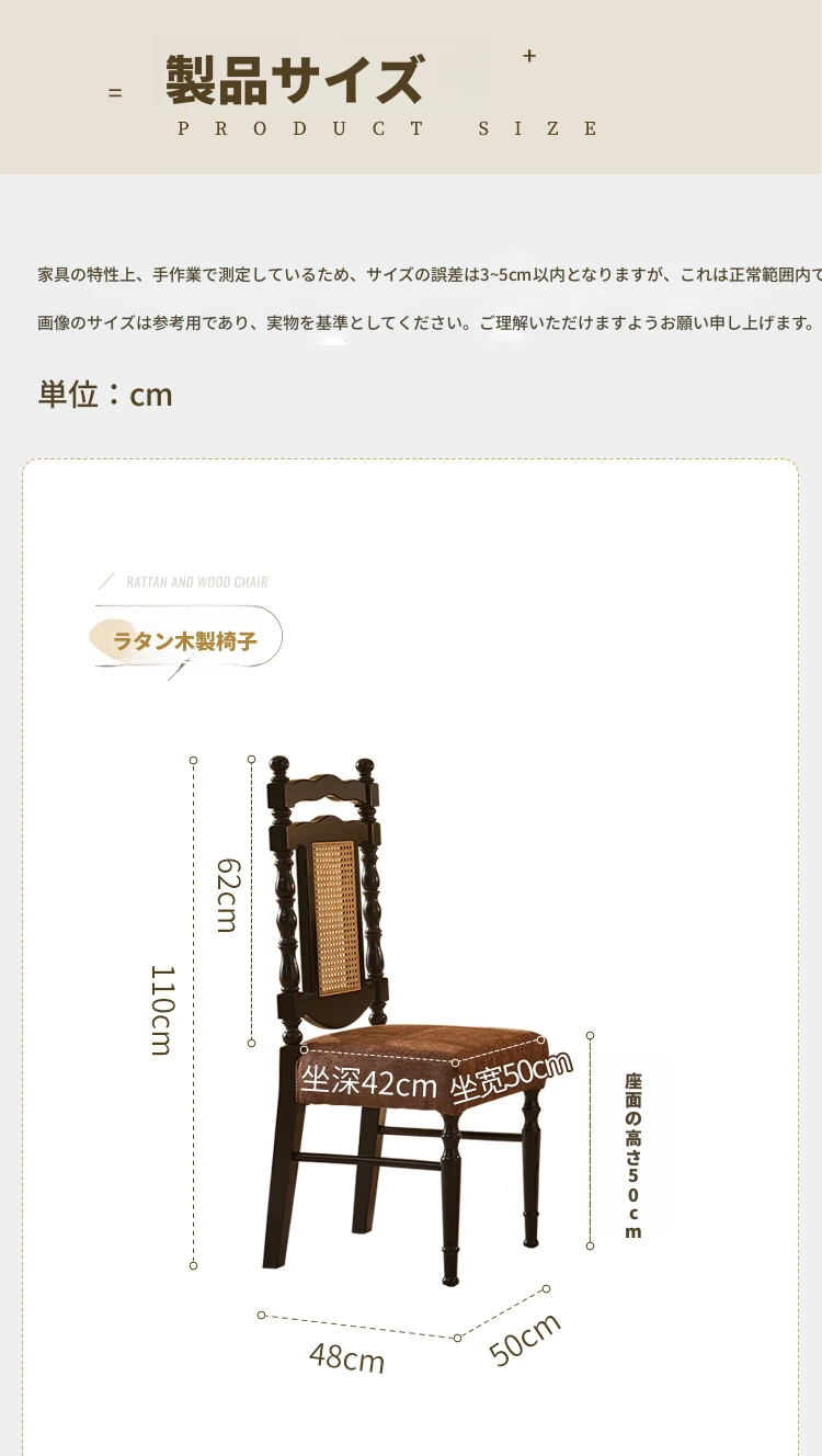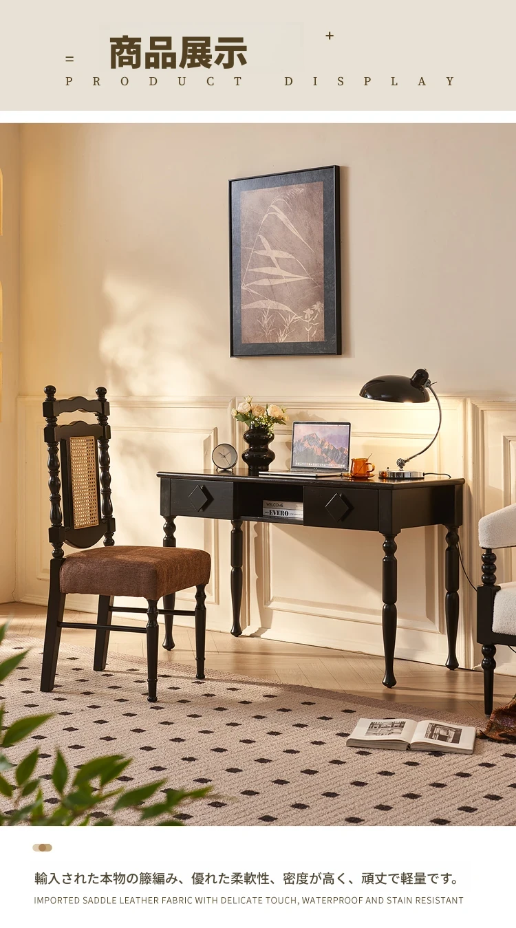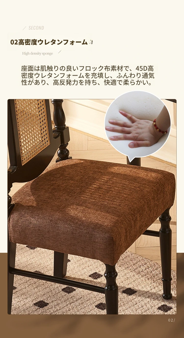 フレンチヴィンテージスタイルの無垢材ラタン編み背もたれダイニングチェア、小さなスペースに最適な民宿やカフェ、レストラン、家庭用の寝室ドレッシングチェアとしても活躍!おしゃれで快適な座り心地をお楽しみください。