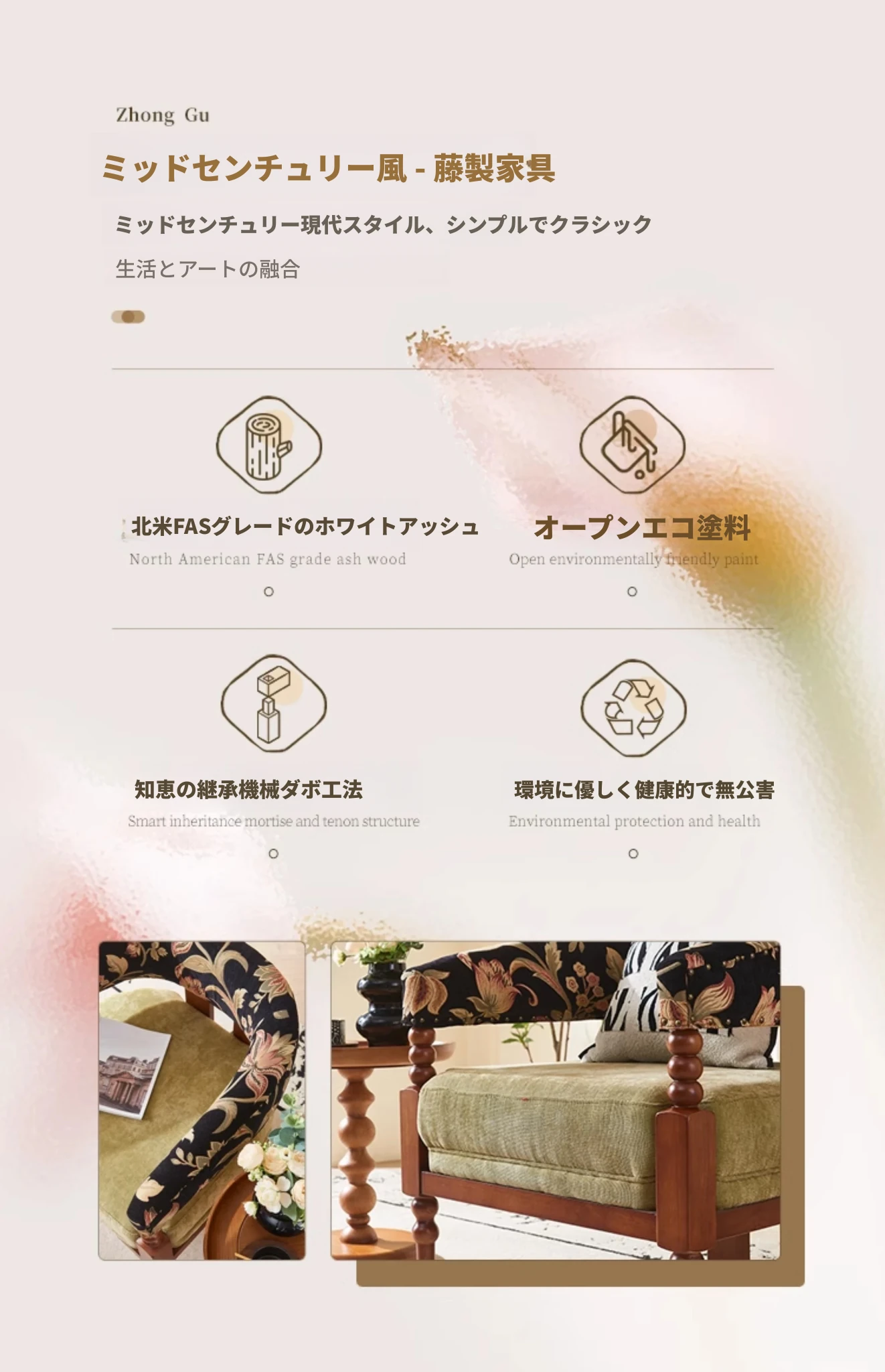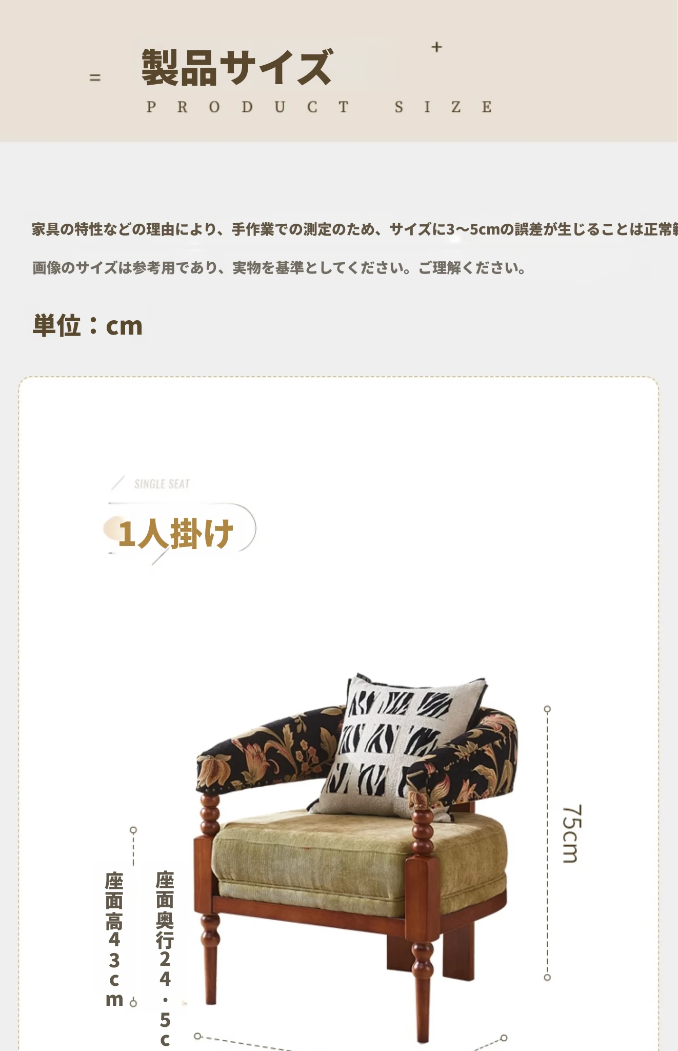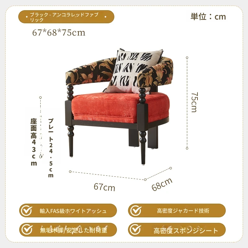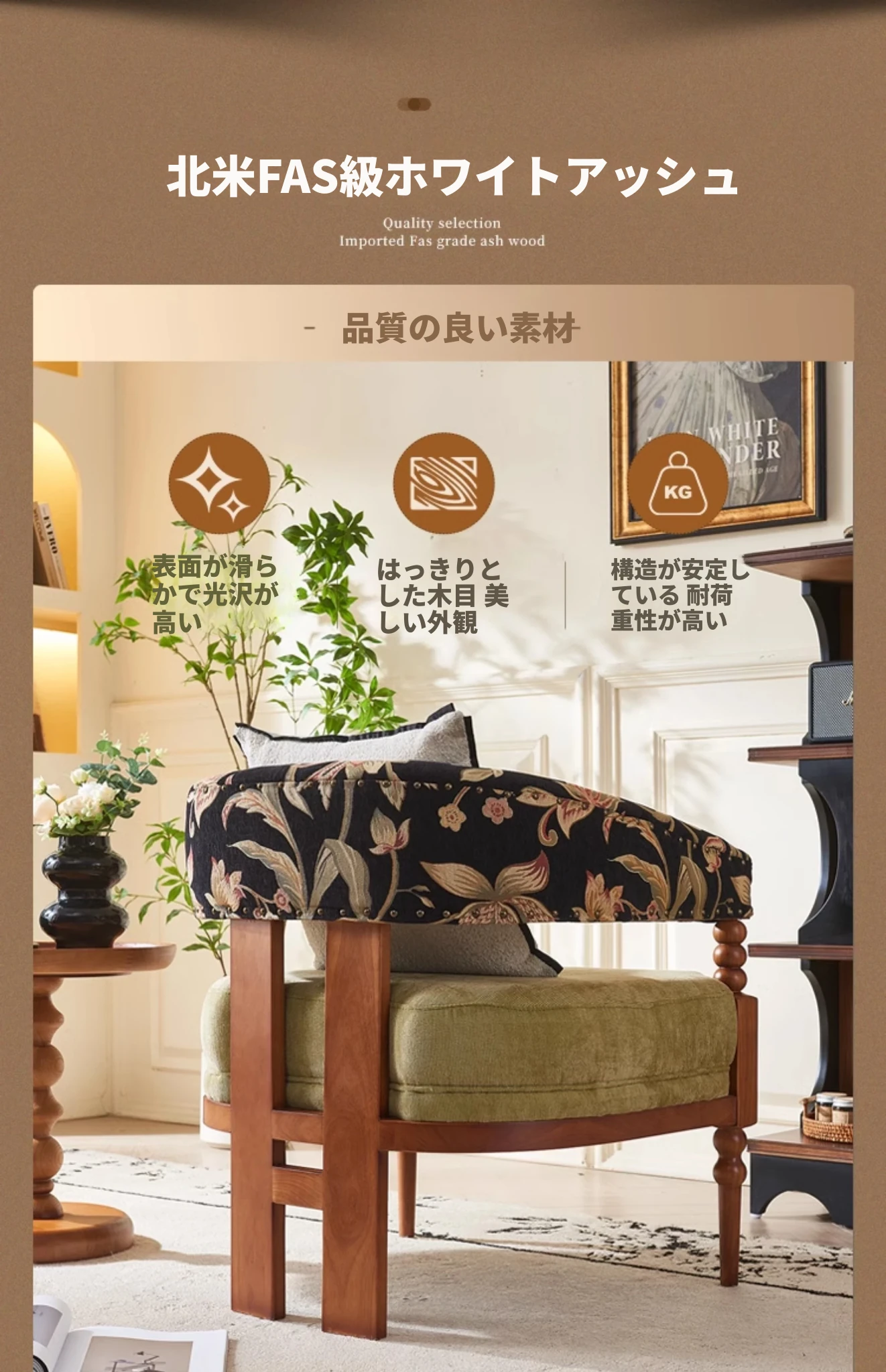 フレンチヴィンテージ無垢材シングルソファチェア - リビングやバルコニーに最適なリラックスチェア!ミニマルデザインの小型住宅向け、洗練されたデザイナー作品。