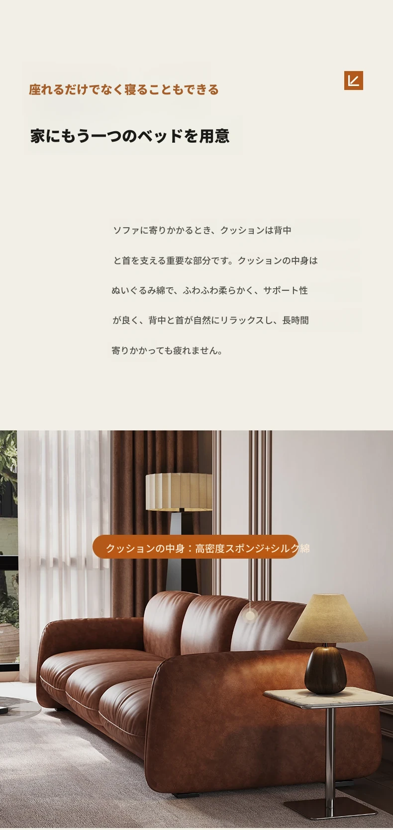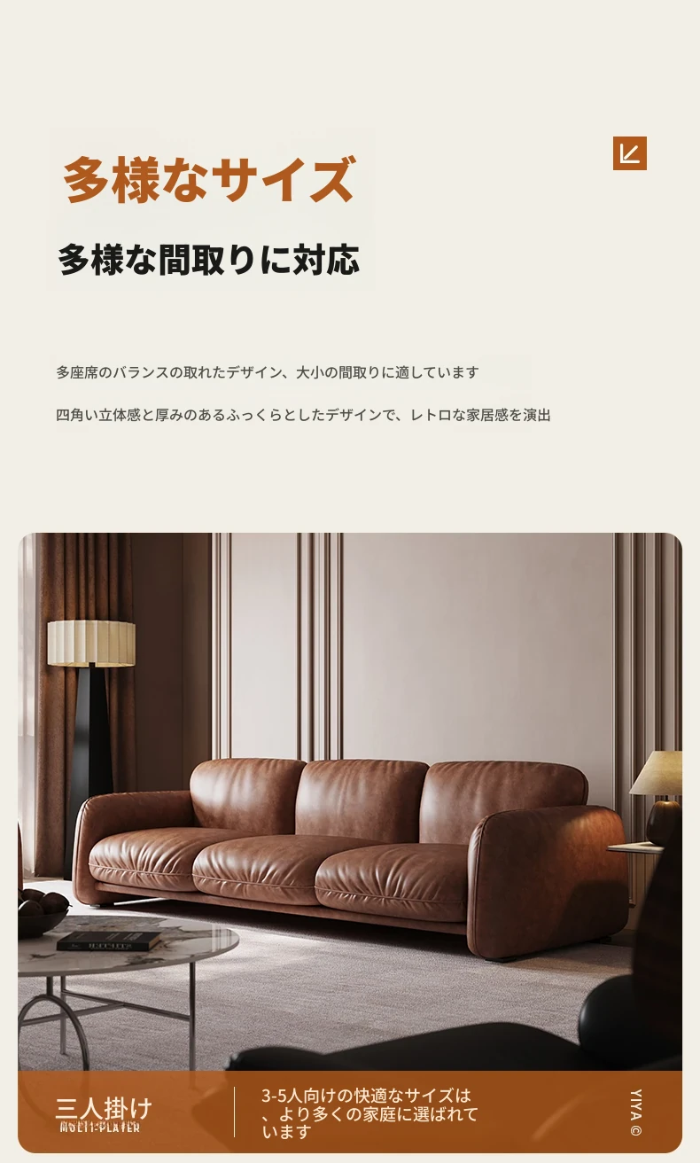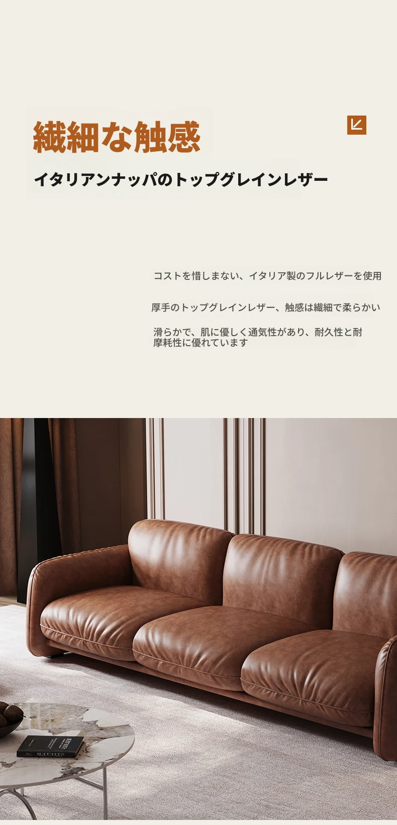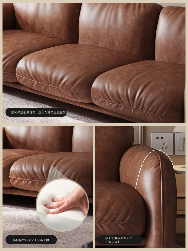 本革製モダンラグジュアリー小型リビングソファー|ヴィンテージスタイルの最高級牛革ソファー|直線デザインでおしゃれな空間を演出!