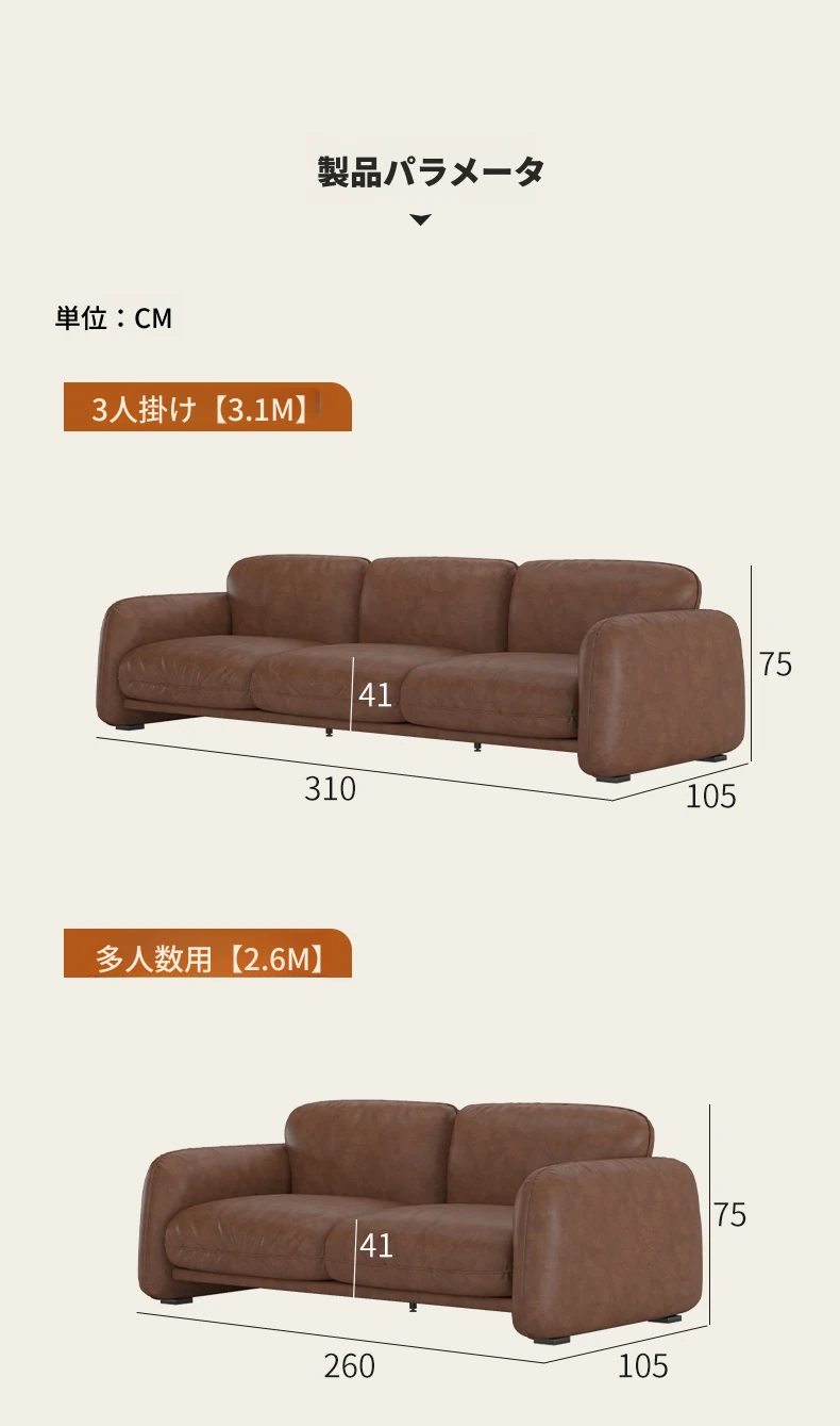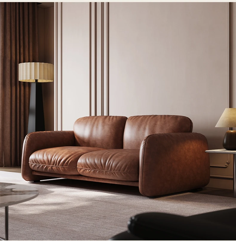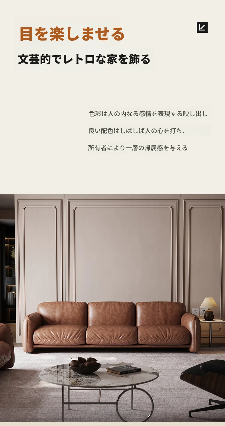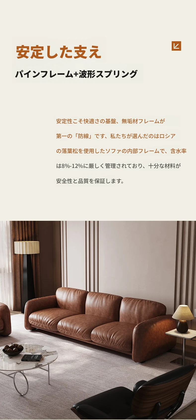 本革製モダンラグジュアリー小型リビングソファー|ヴィンテージスタイルの最高級牛革ソファー|直線デザインでおしゃれな空間を演出!