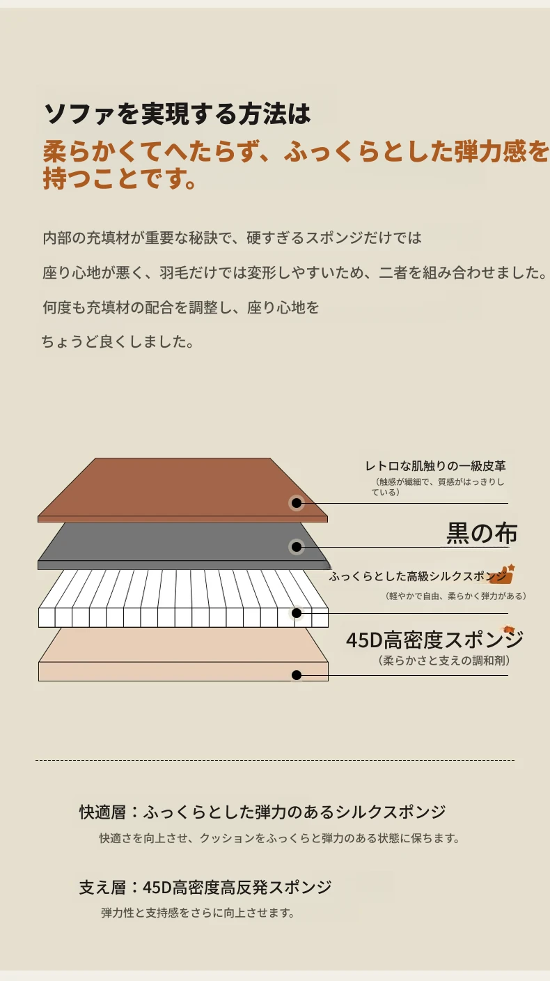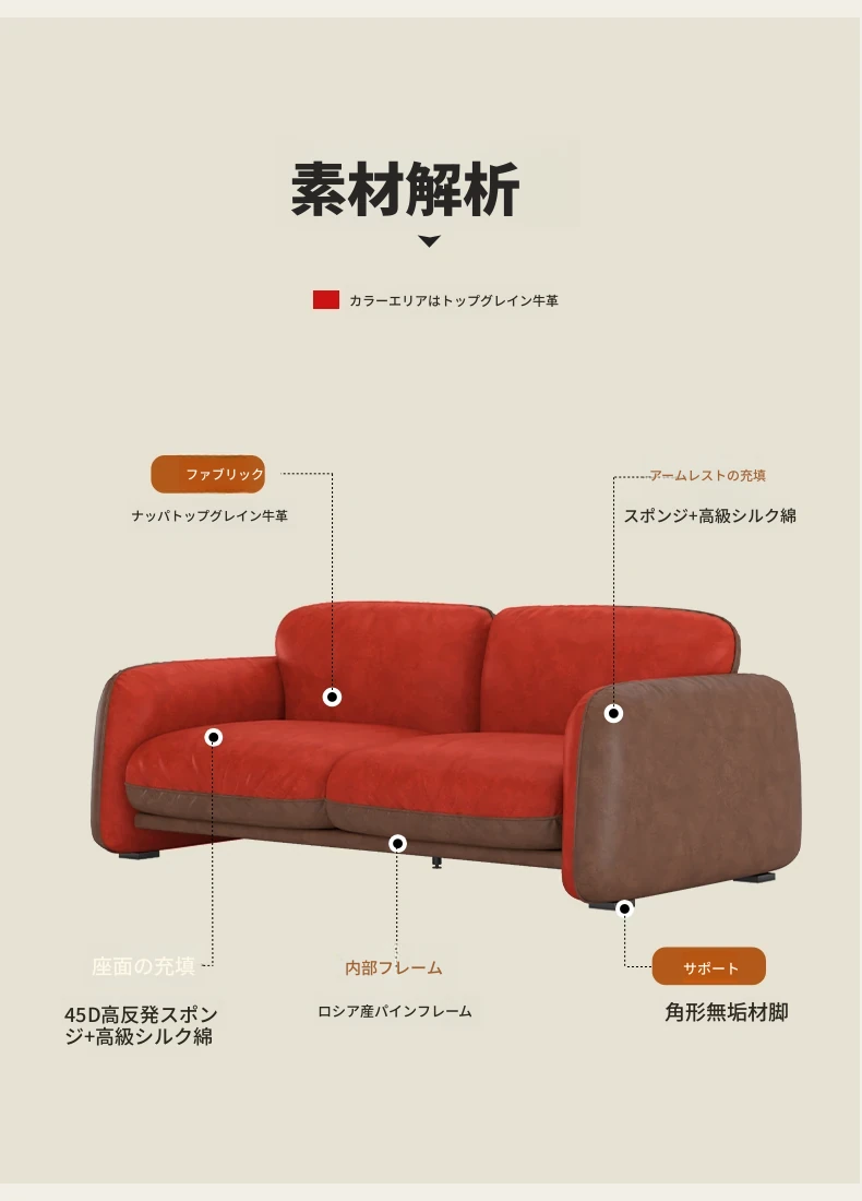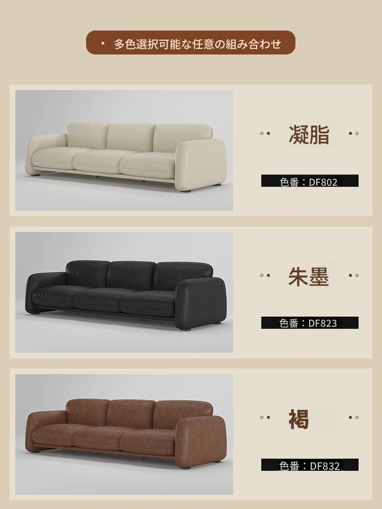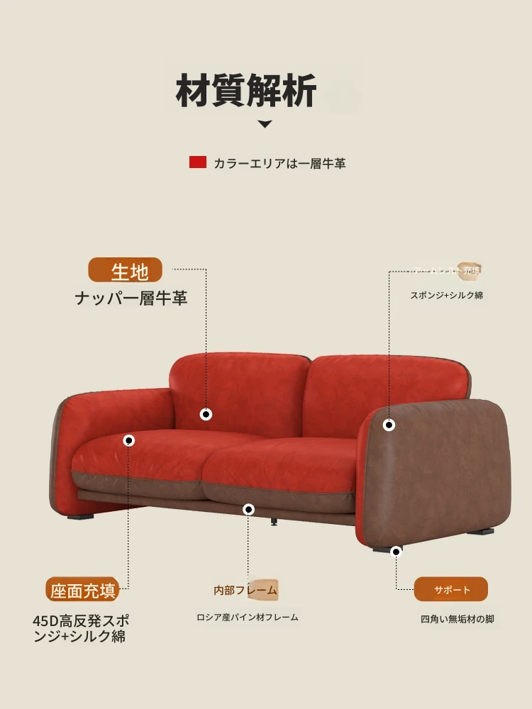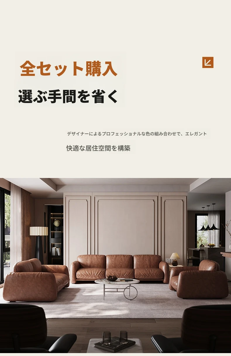 本革製モダンラグジュアリー小型リビングソファー|ヴィンテージスタイルの最高級牛革ソファー|直線デザインでおしゃれな空間を演出!