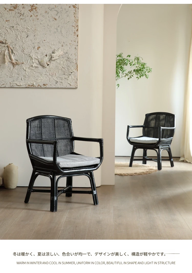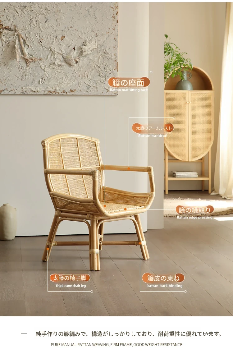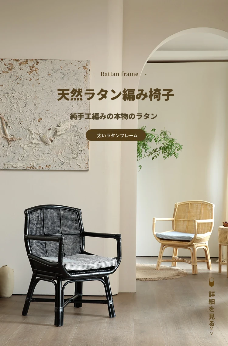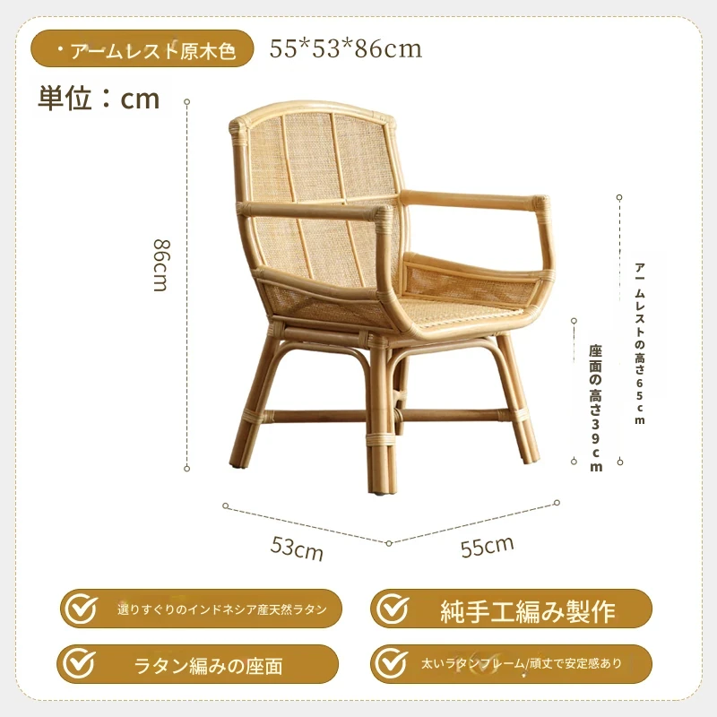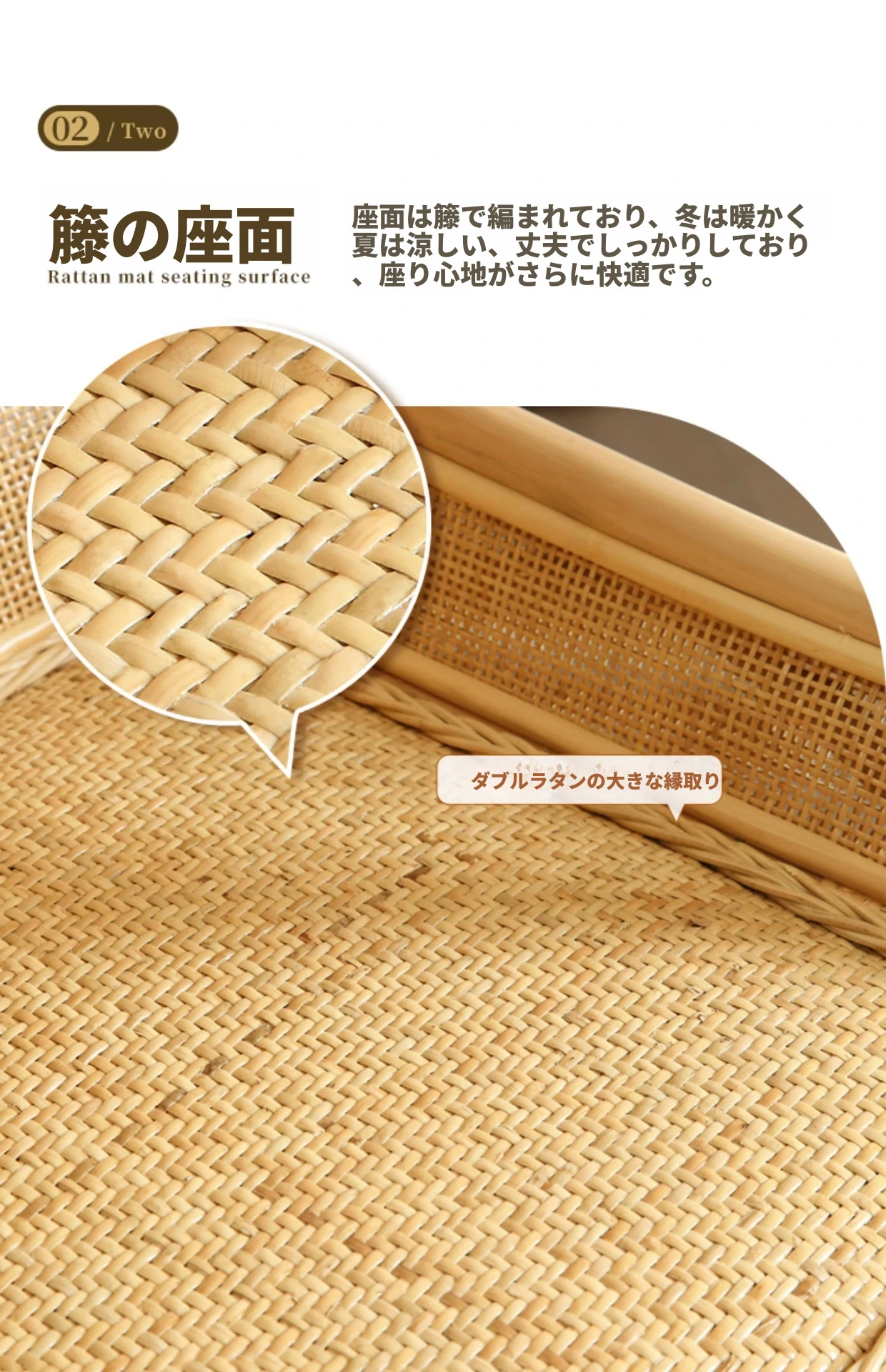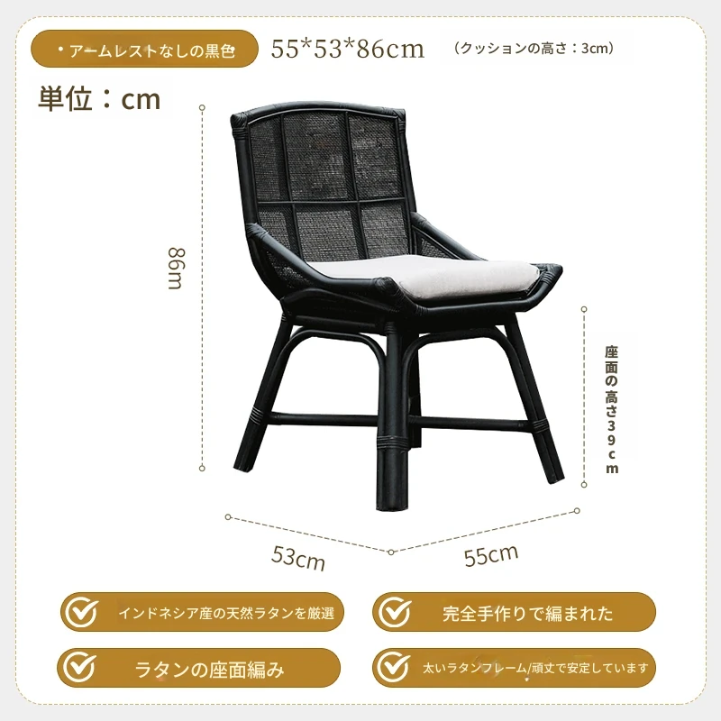 インドネシア製ラタン編みの真藤椅子3点セット - バルコニーでのリラックスに最適な茶卓と椅子のコンビネーション!シンプルで美しい侘寂風デザインの一人用無垢材椅子で、あなただけのくつろぎ空間を演出します。