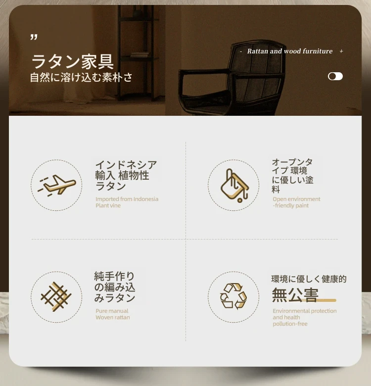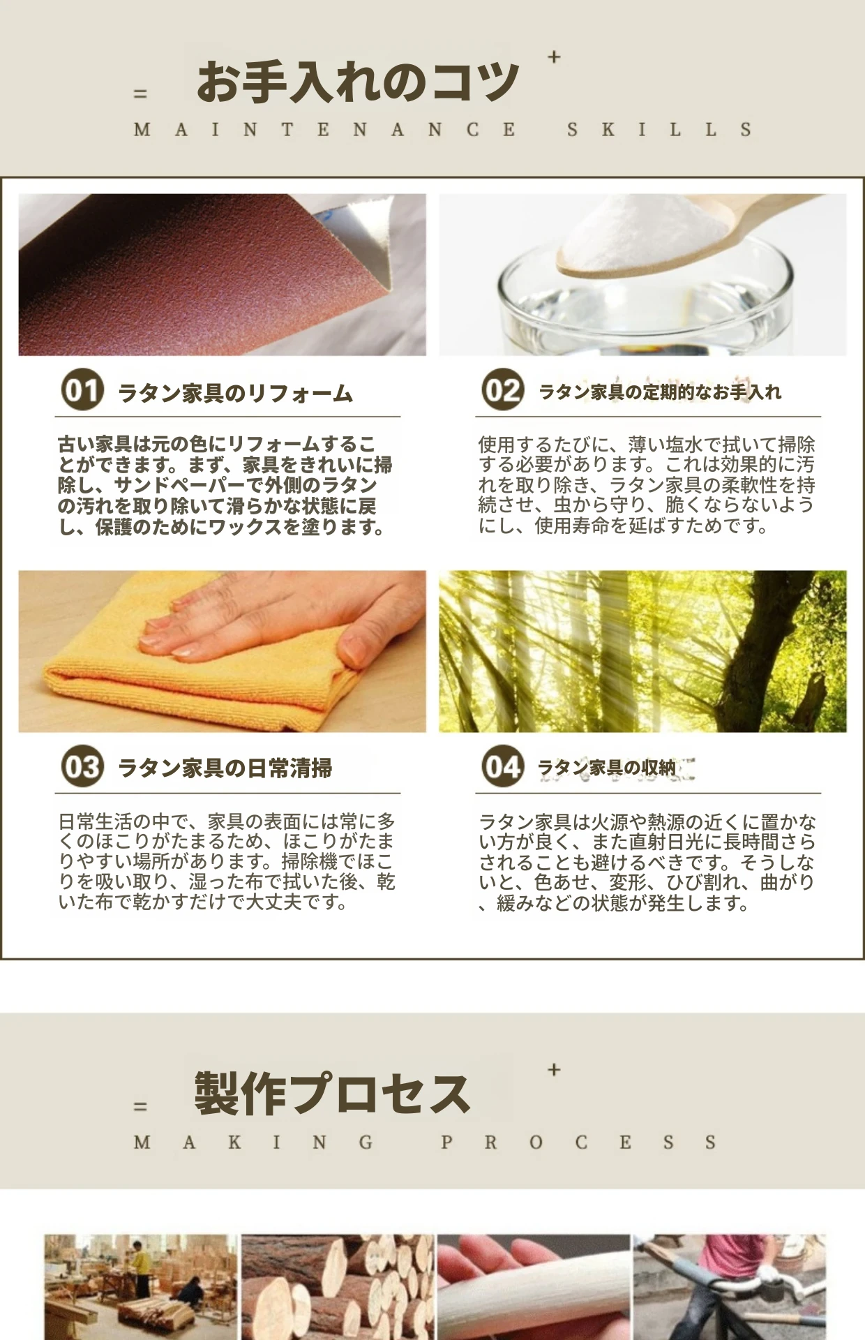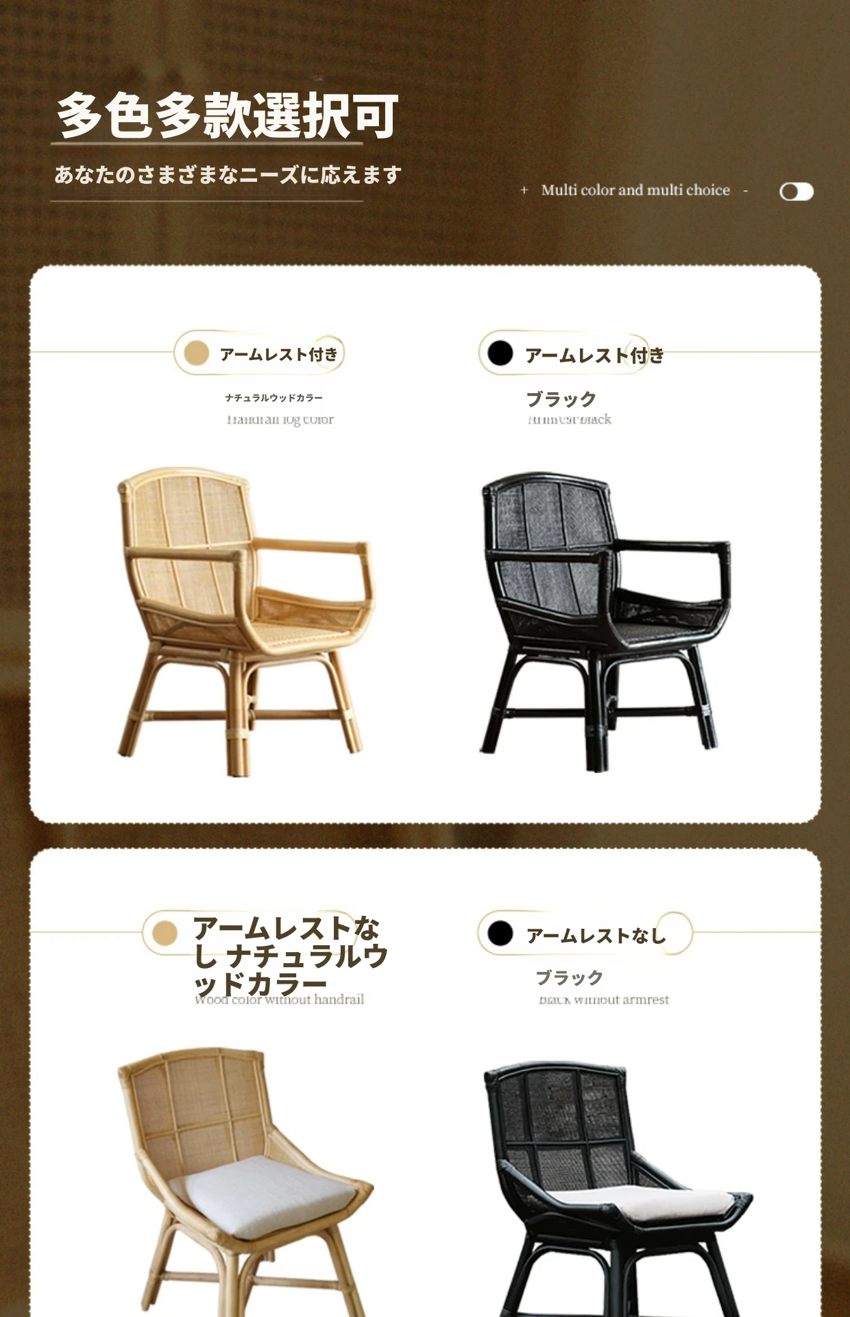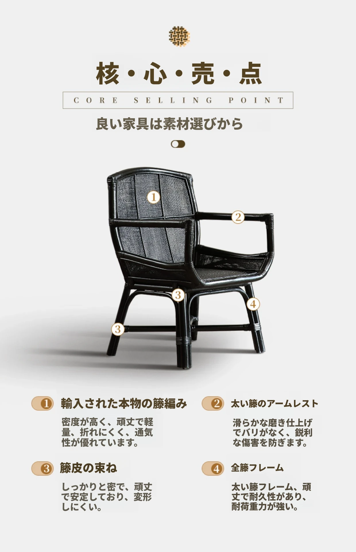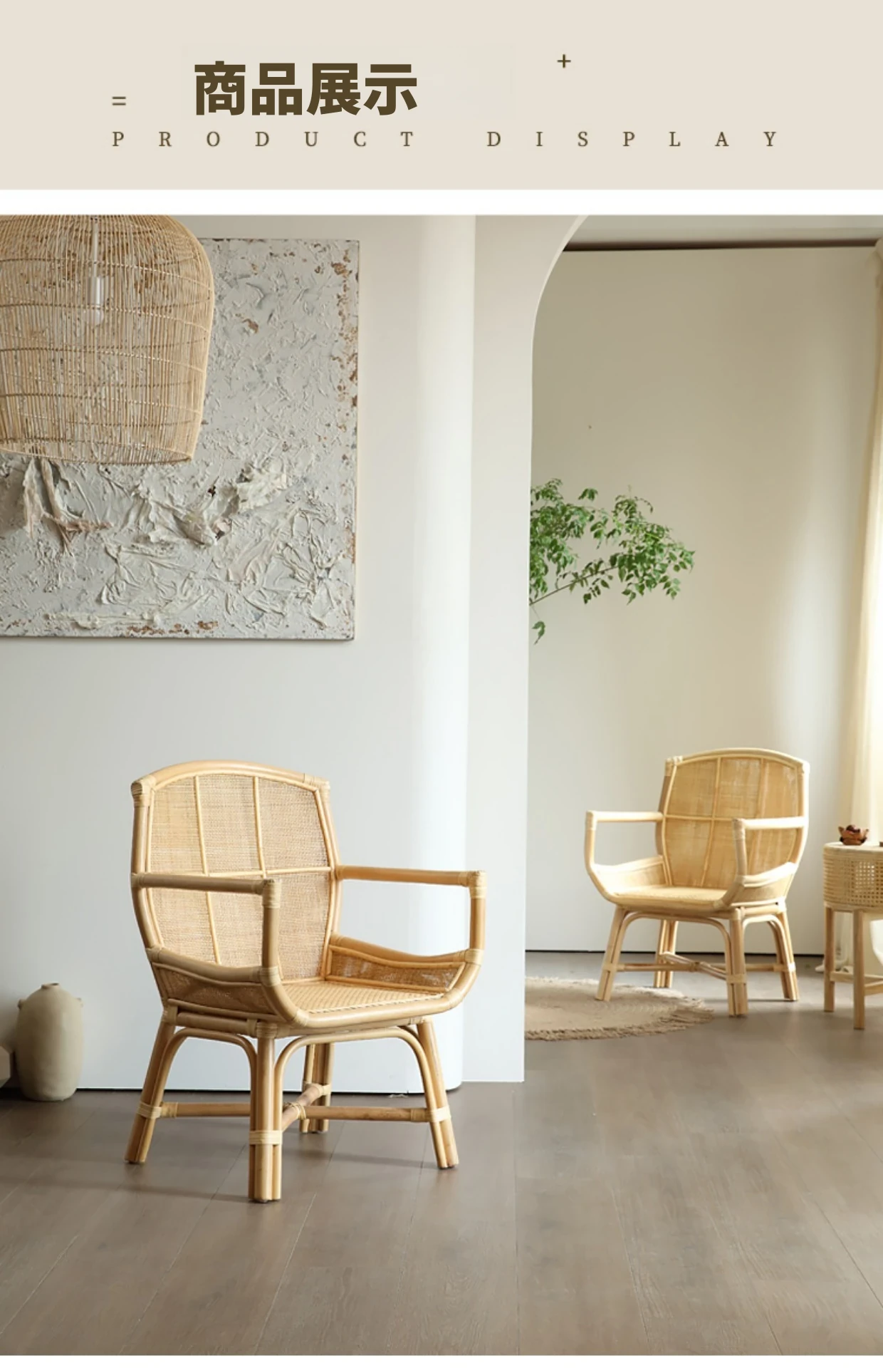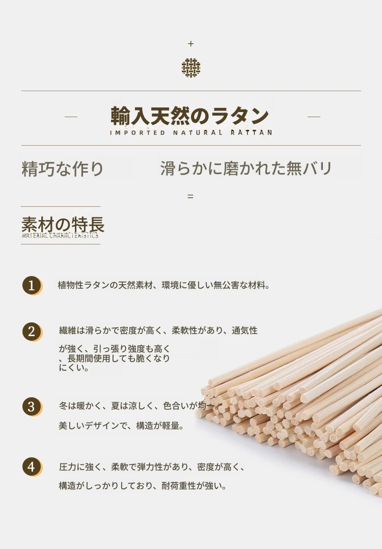 インドネシア製ラタン編みの真藤椅子3点セット - バルコニーでのリラックスに最適な茶卓と椅子のコンビネーション!シンプルで美しい侘寂風デザインの一人用無垢材椅子で、あなただけのくつろぎ空間を演出します。