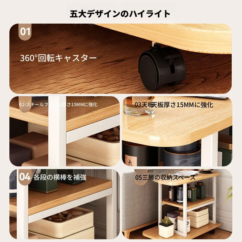 ⭐デイリー特価 思いっきり買おう❗⭐【キャスター付き】田園オーク色+白フレーム【厚口スチールフレーム】