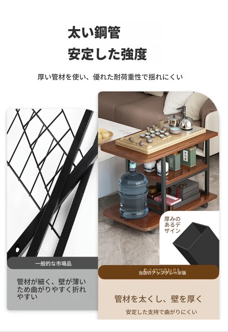 アイアン製ソファサイドテーブル&サイドキャビネット - 移動可能なティーテーブル!家庭用ティーテーブルや小さなコーヒーテーブルとして、リビングやバルコニーで大活躍。おしゃれなデザインで、あなたの空間を引き立てます!