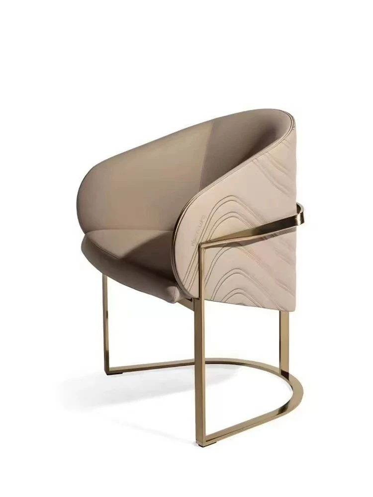 イタリアンラグジュアリーの背もたれ付き本革テーブル&チェアセット - ステンレス製、洗練されたデザインで高級感漂うカフェ、レストラン、ホテルに最適!お客様を引き寄せる特別な空間を演出します。