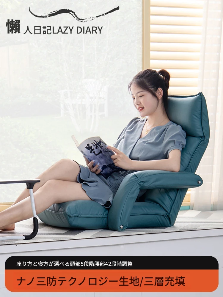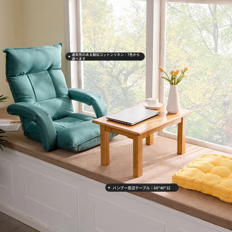 和風のリラックスソファ!畳スタイルの一人掛けチェア、窓辺やバルコニー、リビングに最適。アームレスト付きで快適な座り心地。あなたの癒し空間を演出します!