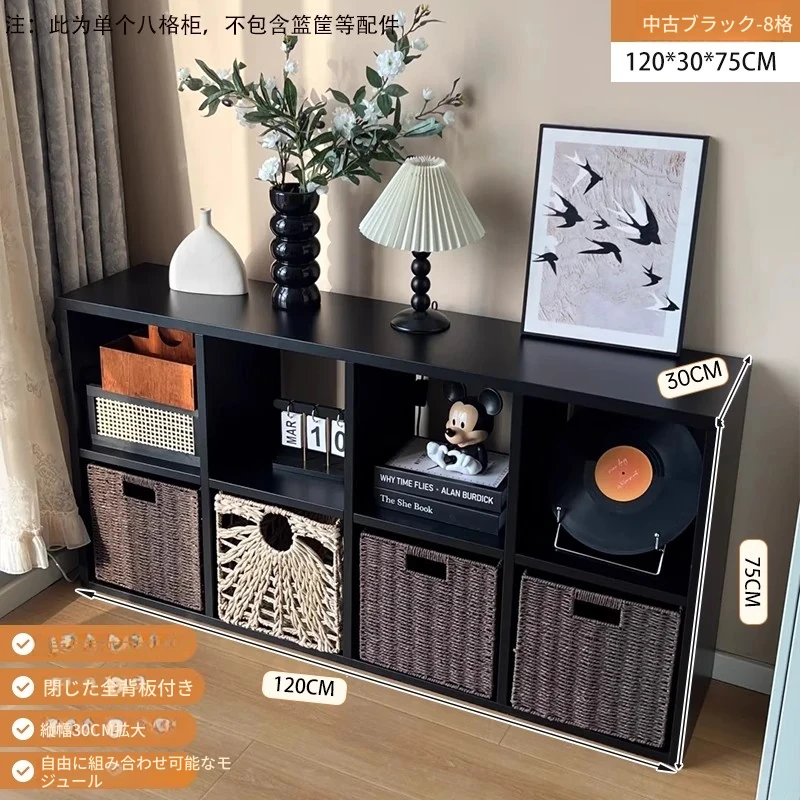 【八格キャビネット⭐無垢エコ板】中古黒120*30*75cmカライク代替品
