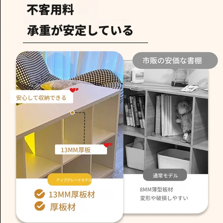 【七格キャビネット-底部拡張】暖白色100*23*100cm品質密度板