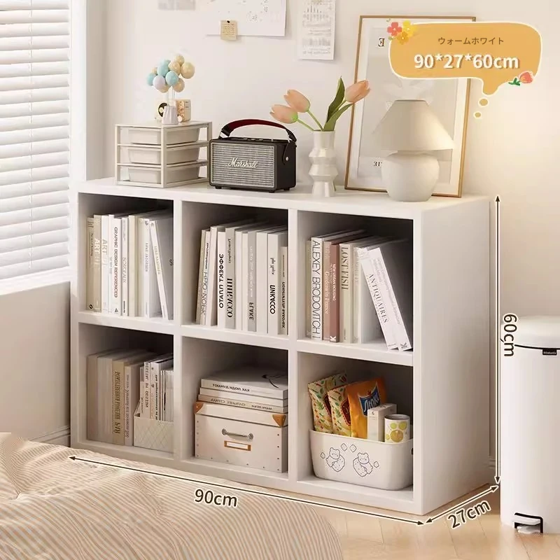 【六格キャビネット★品質密度板】暖白色90*27*74cm背板付き