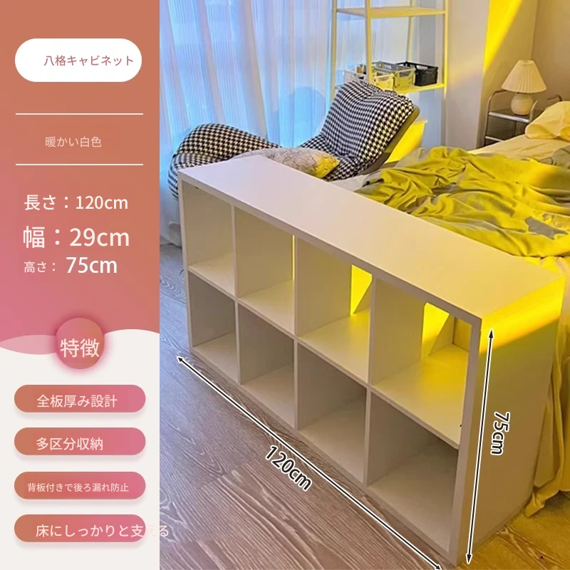 【八格キャビネット★品質密度板】暖白色120*29*60cm背板付き