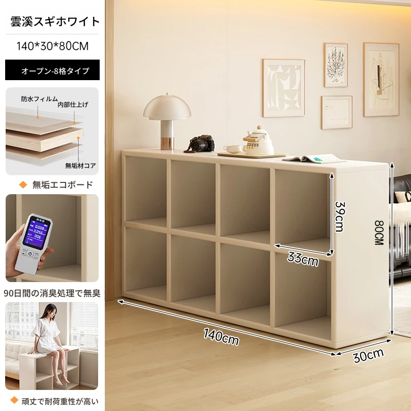 【八格キャビネット⭐無垢エコ板】云溪白140*30*80cmカライク代替品